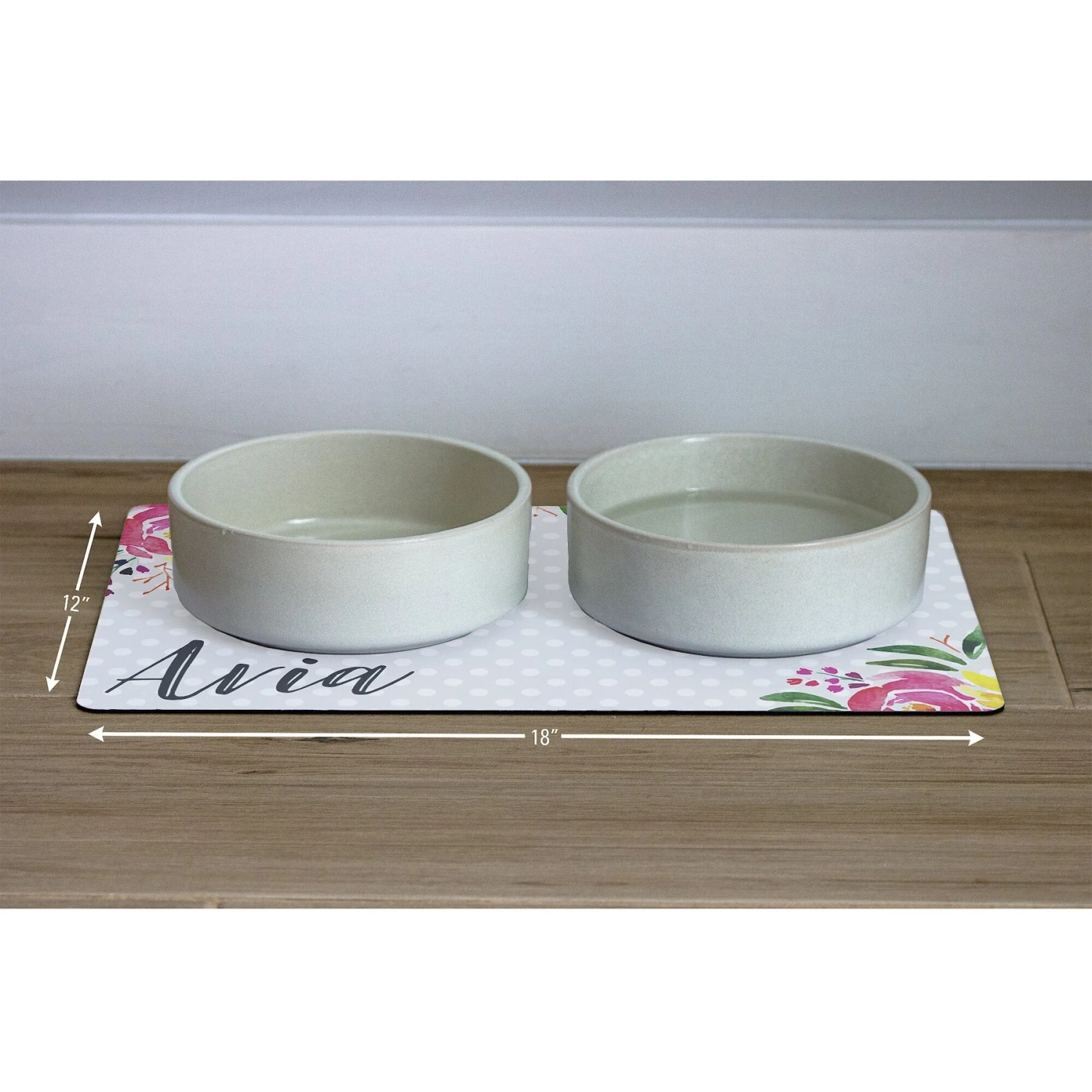 904 Custom Polka Dot Floral Personalized Dog & Cat Placemat