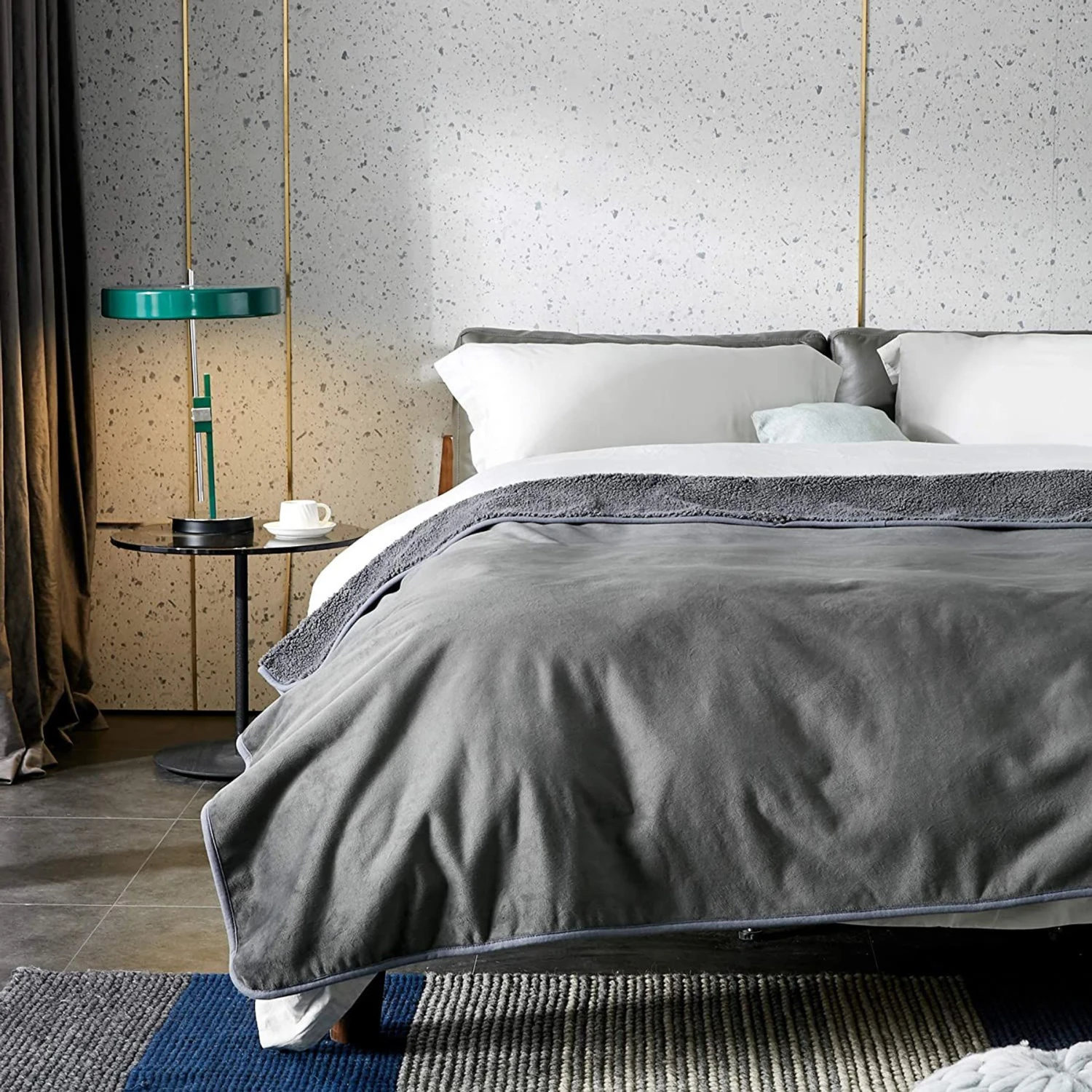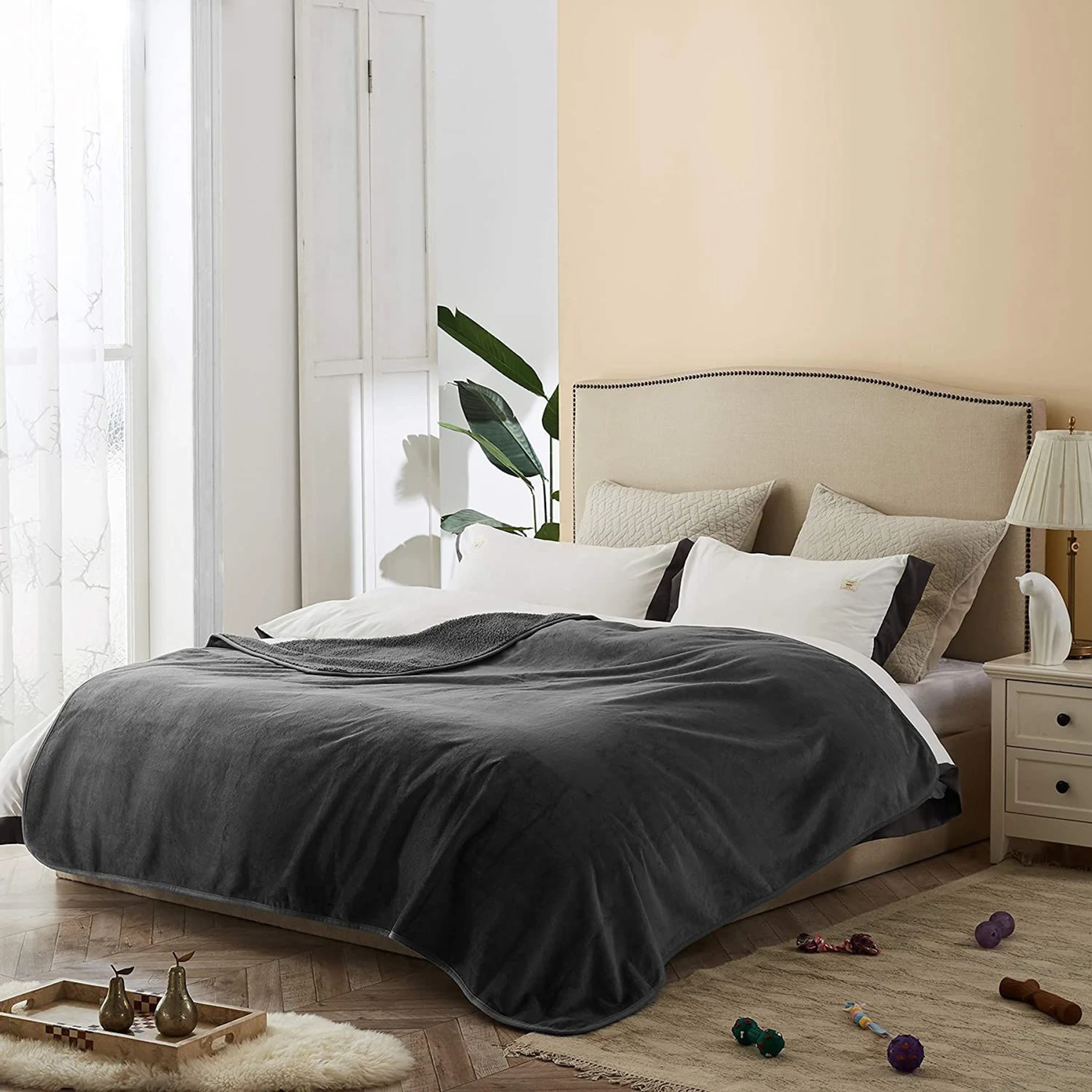 Allisandro Extra Soft Micro Fleece With Sherpa Triple Layer Tech Waterproof Cat & Dog Blanket, Dark Grey