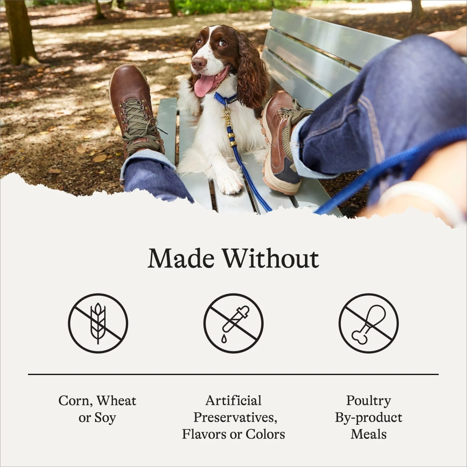 - No wheat, corn, soy, poultry by-product meals, artificial colors, artificial flavors or artificial preservatives.