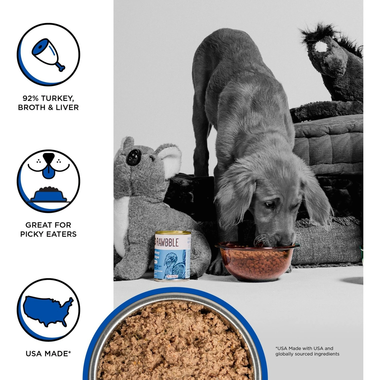 BIXBI Rawbble Grain-Free Canned Turkey Recipe Wet Dog Food For Puppies, 12.5-oz Can, Case Of 12