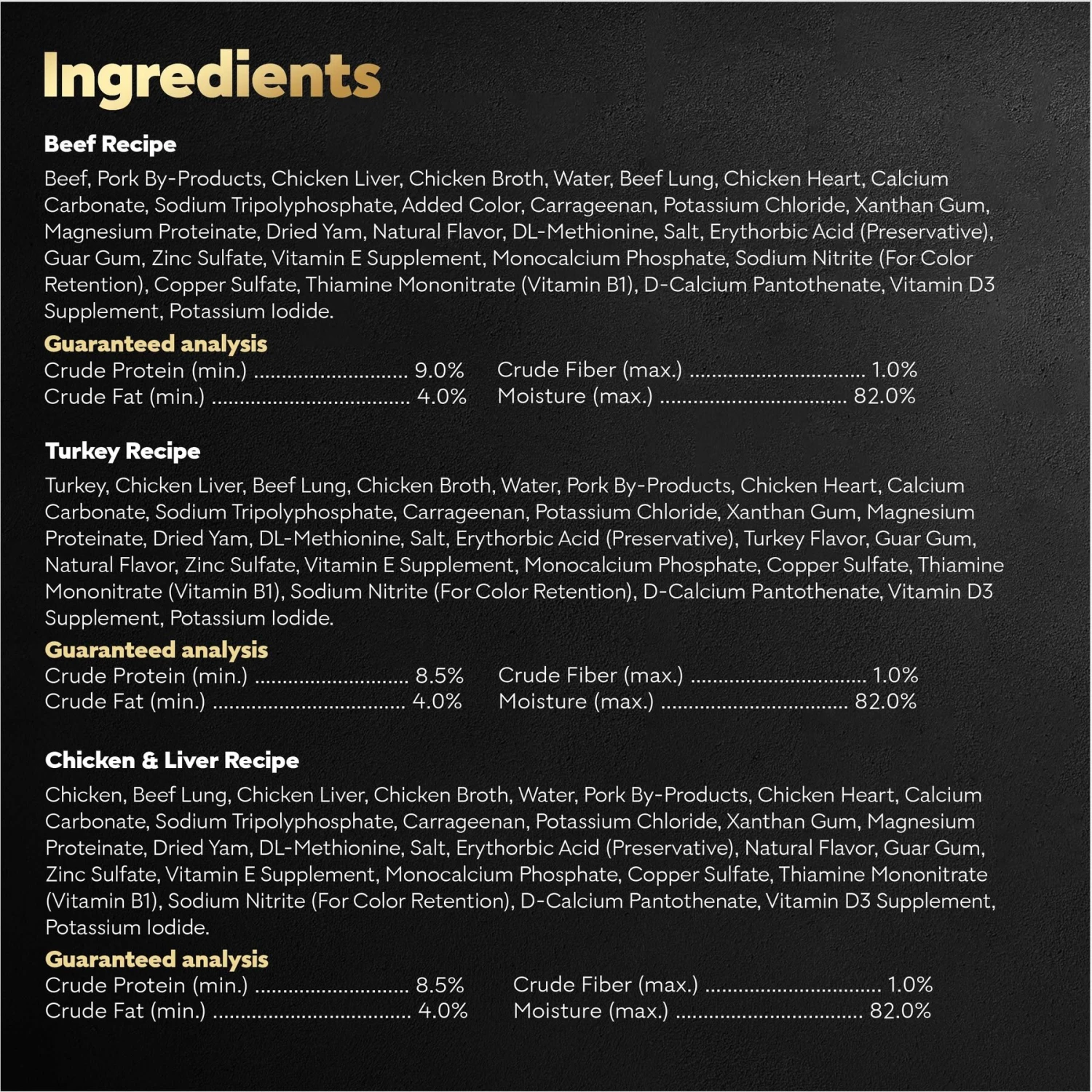 - Crafted with real meat as the number one ingredient, these classic loaf in sauce meals can be served alone or as a complement to any dry food.