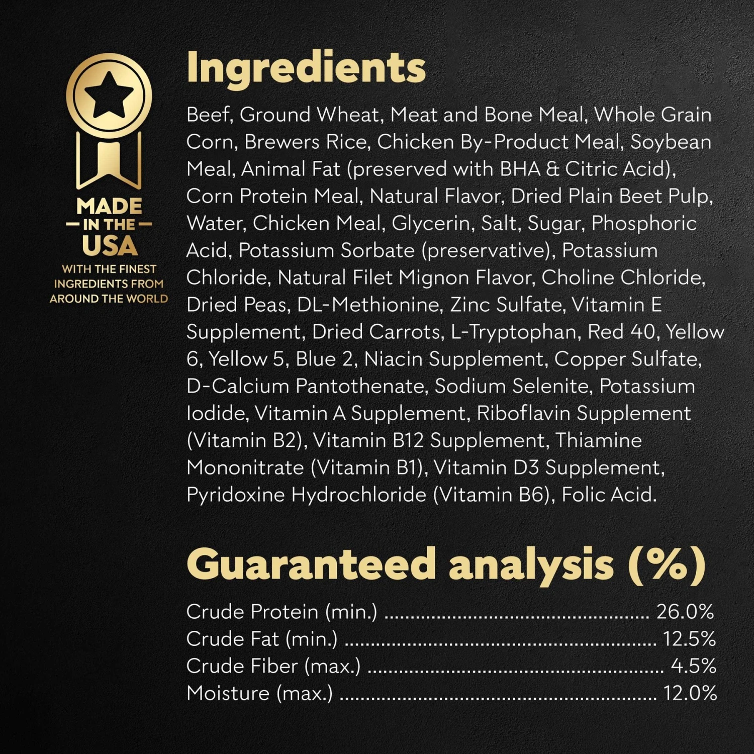 - This nutritionally complete and balanced meal is made with tender, easy-to-chew pieces of filet mignon paired with a crunchy kibble.