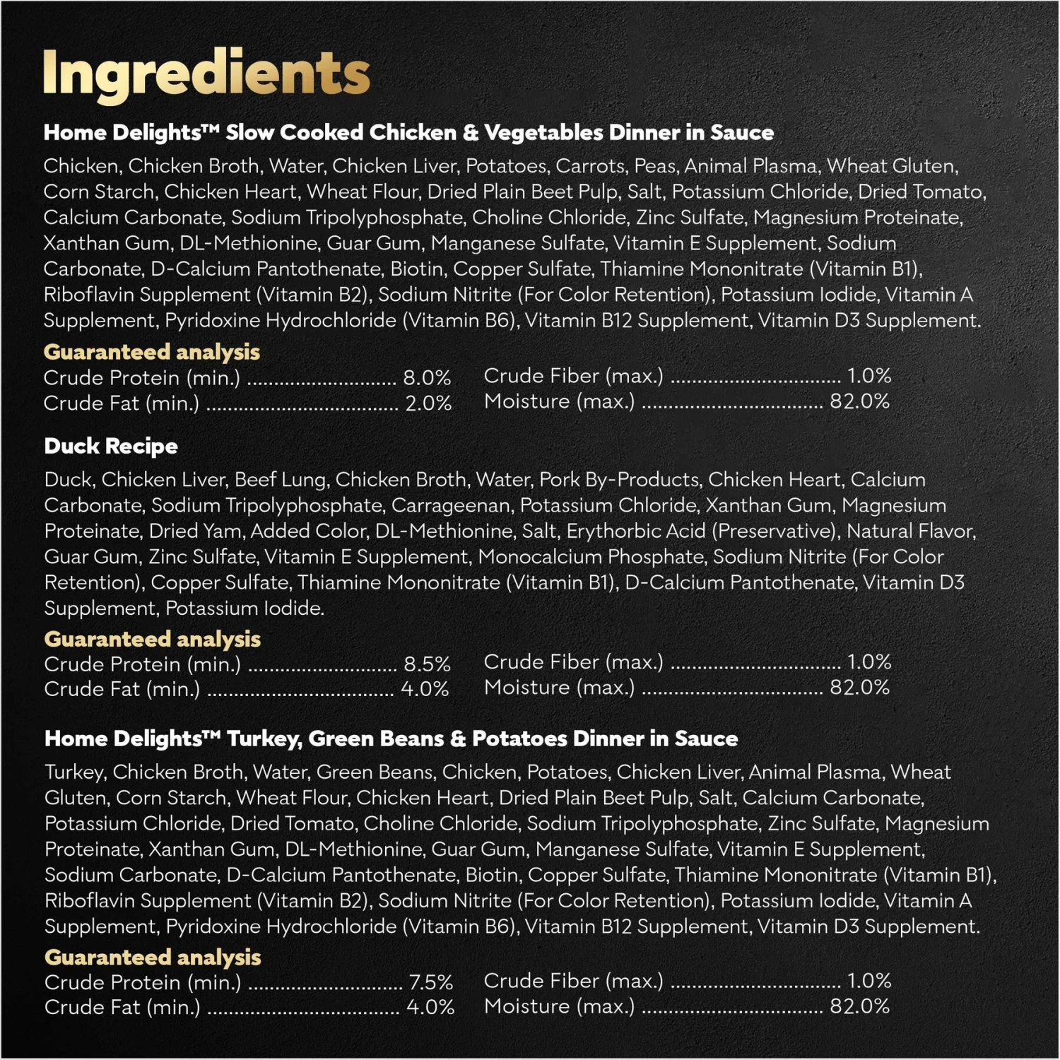 - Crafted with real poultry as the number one ingredient, these classic loaf-in-sauce meals can be served alone or as a complement to any dry food.