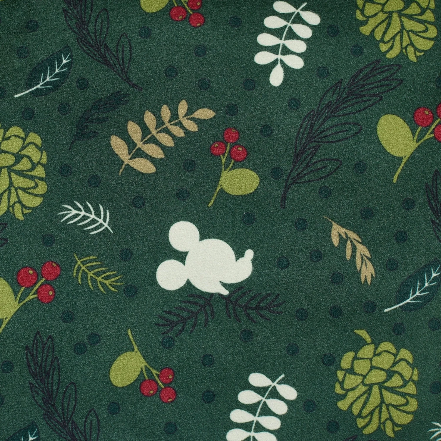 - Sherpa fleece inside with a holiday-inspired print, featuring Mickey’s silhouette, holiday foliage and classic holiday colors, around the outside.
