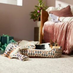 - Sherpa fleece inside with southwestern-style, diamond-patterned material around the outside keeps your pet comfy and looks great in your home.