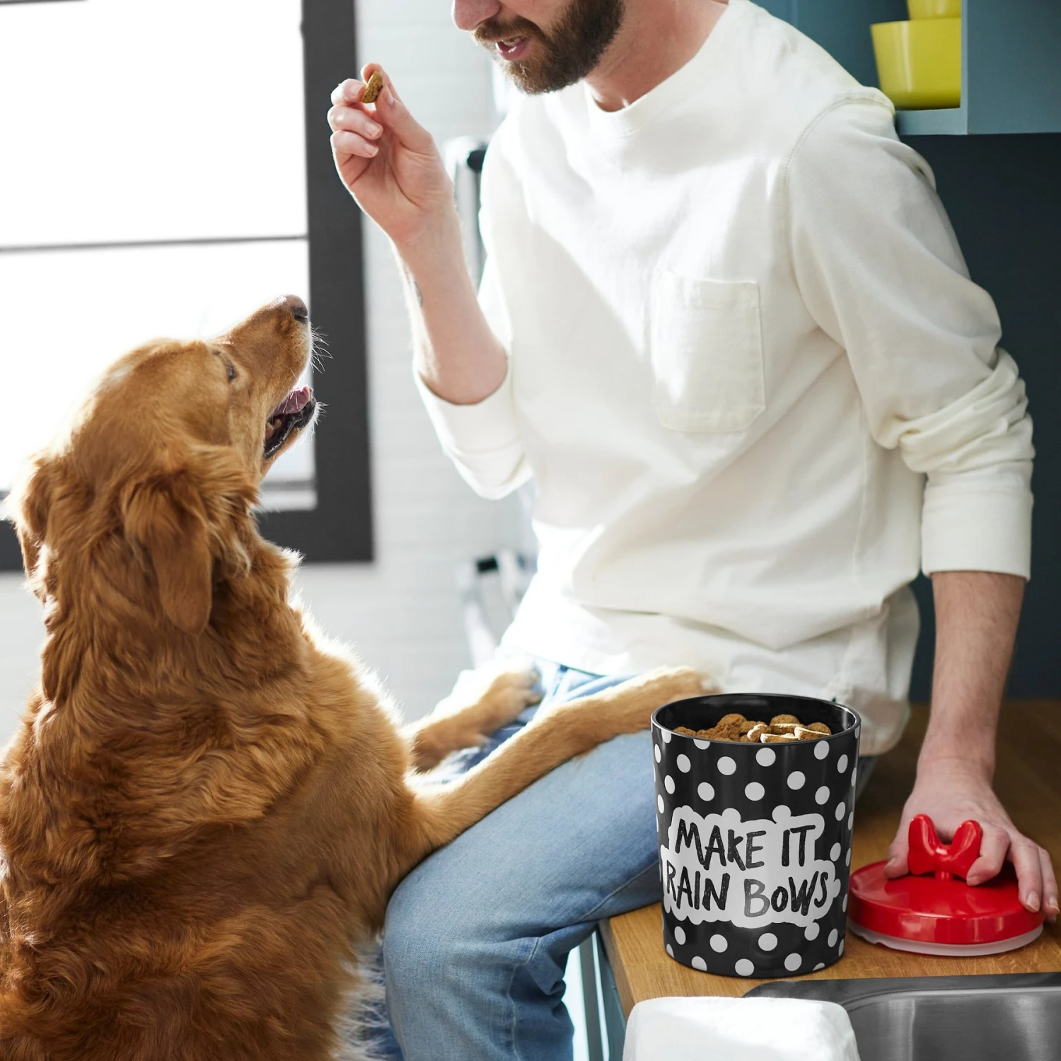 - Melamine design helps to ensure that you have a place to store your furry friend’s treats for a long time.