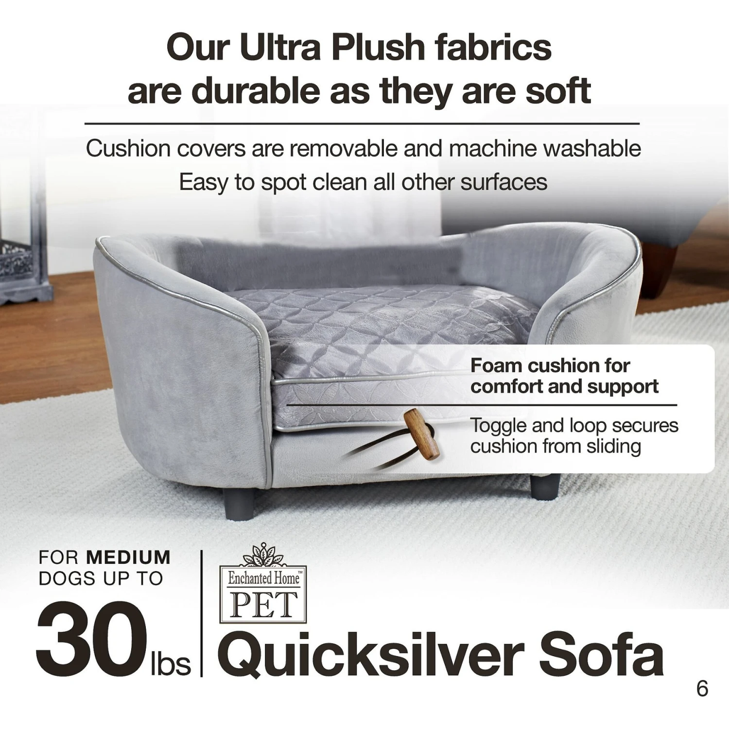 Enchanted Home Pet Quicksilver Sofa Cat & Dog Bed With Removable Cover, Medium, Silver