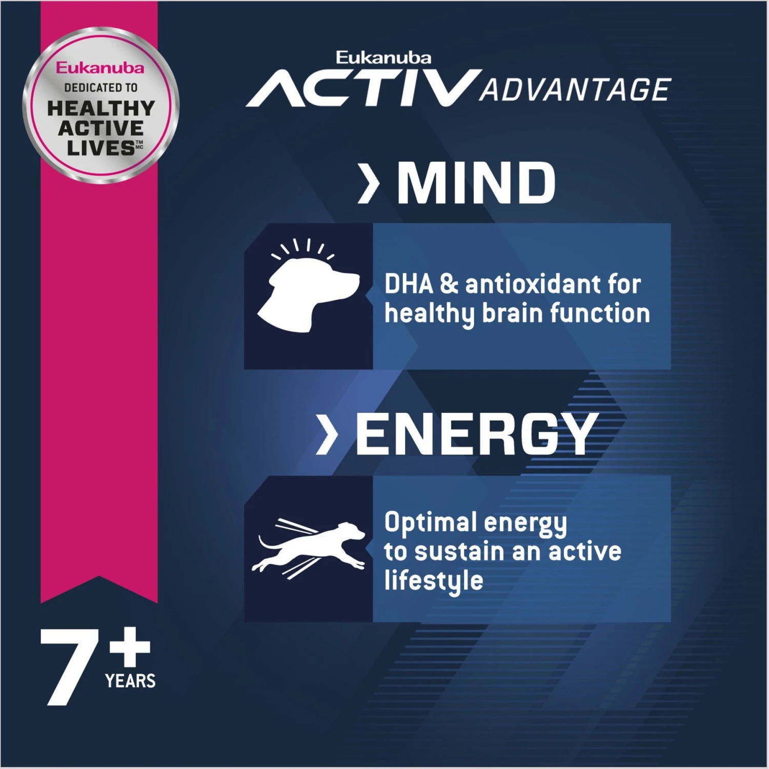- Supports healthy brain function in senior dogs with DHA and antioxidants.