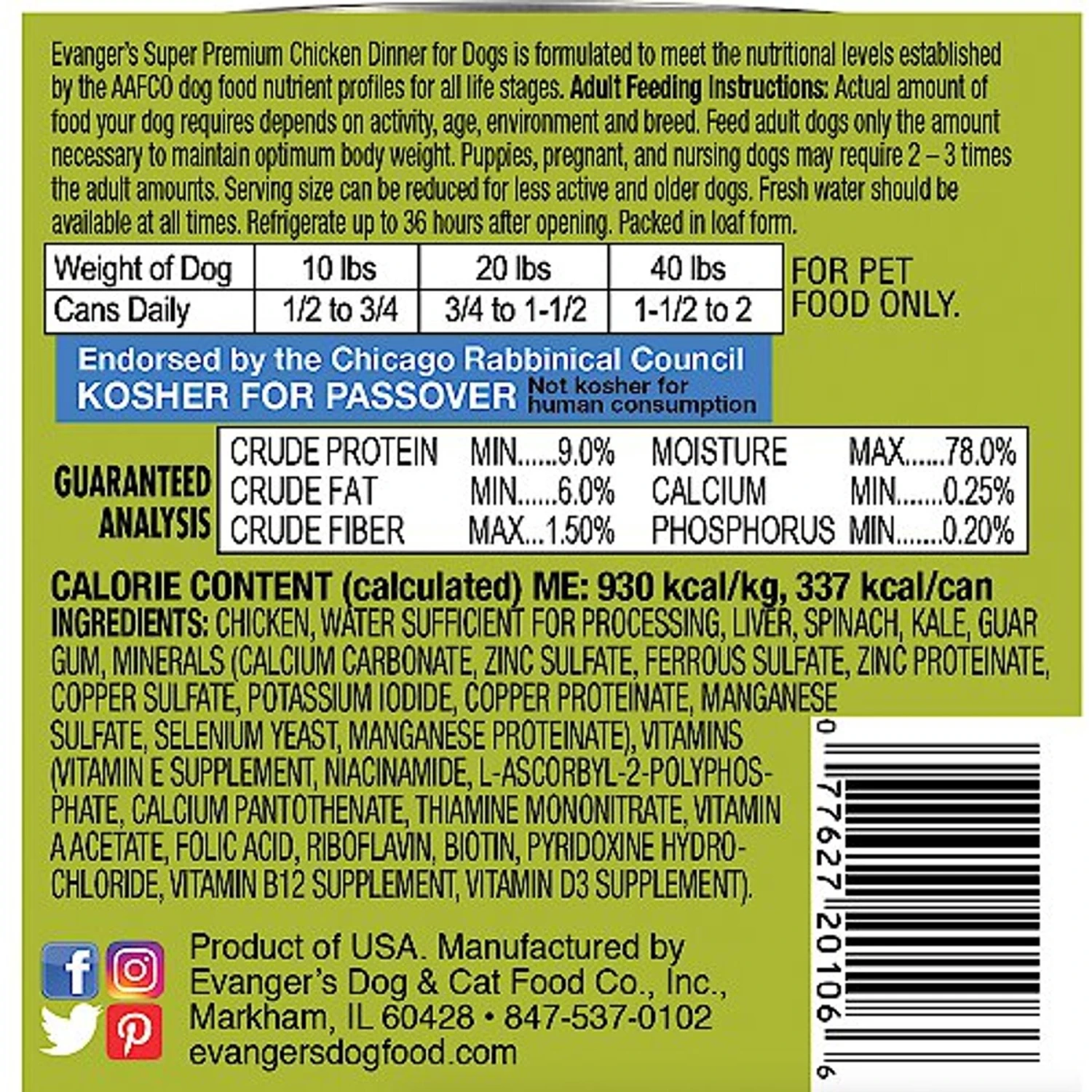 Evanger’s Super Premium Chicken Dinner Grain-Free Canned Dog Food