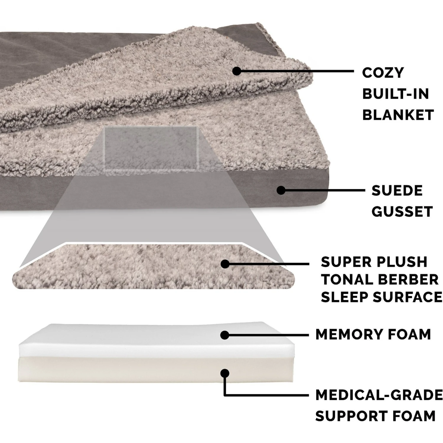 FurHaven Berber & Suede Blanket Top Memory Foam Cat & Dog Bed