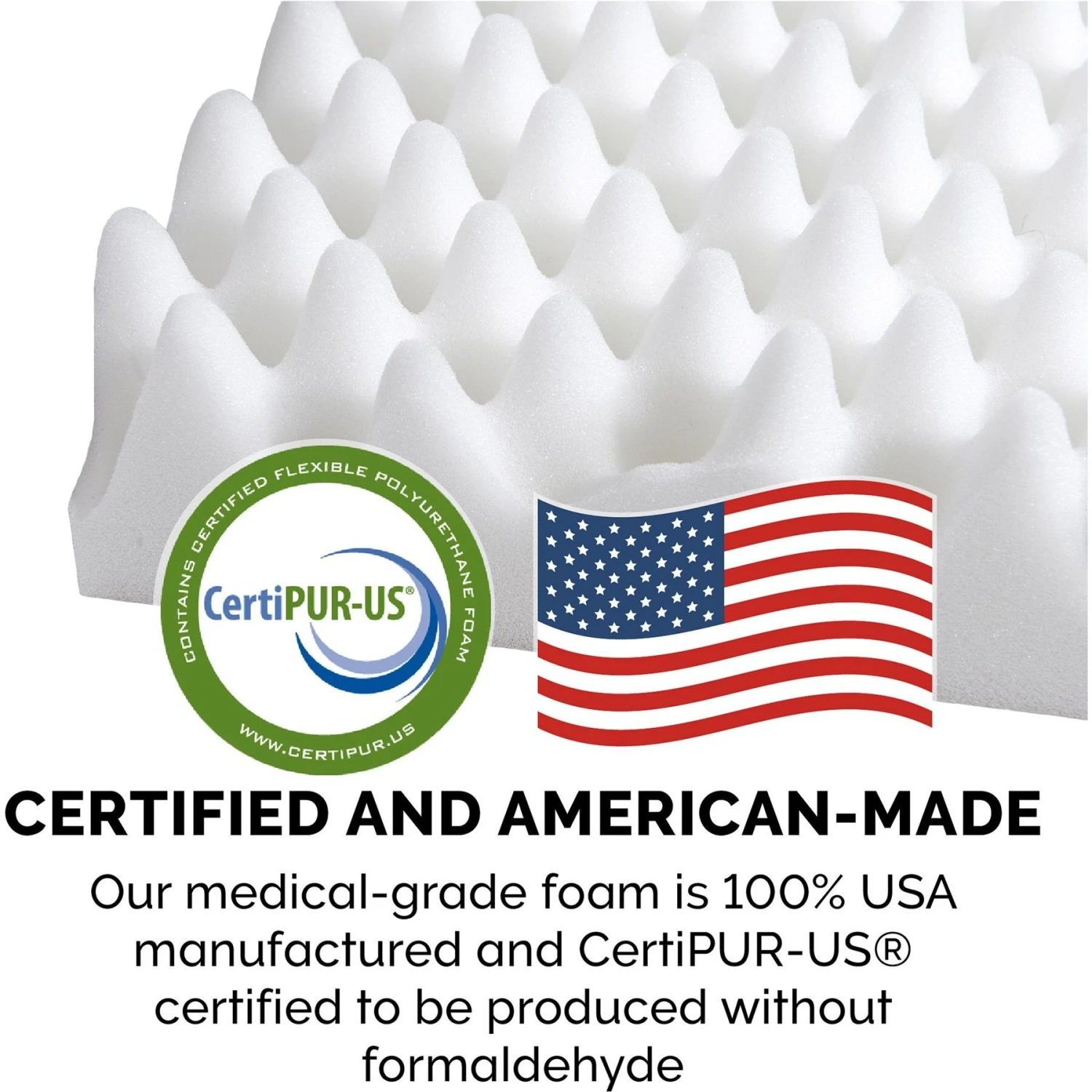 - Egg crate orthopedic foam base helps cushion pressure points and improve air circulation.