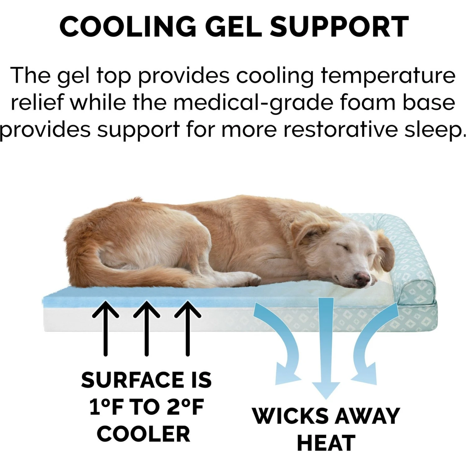 - Features three bolsters and an orthopedic, gel-infused memory foam base to help support joints and pressure points.