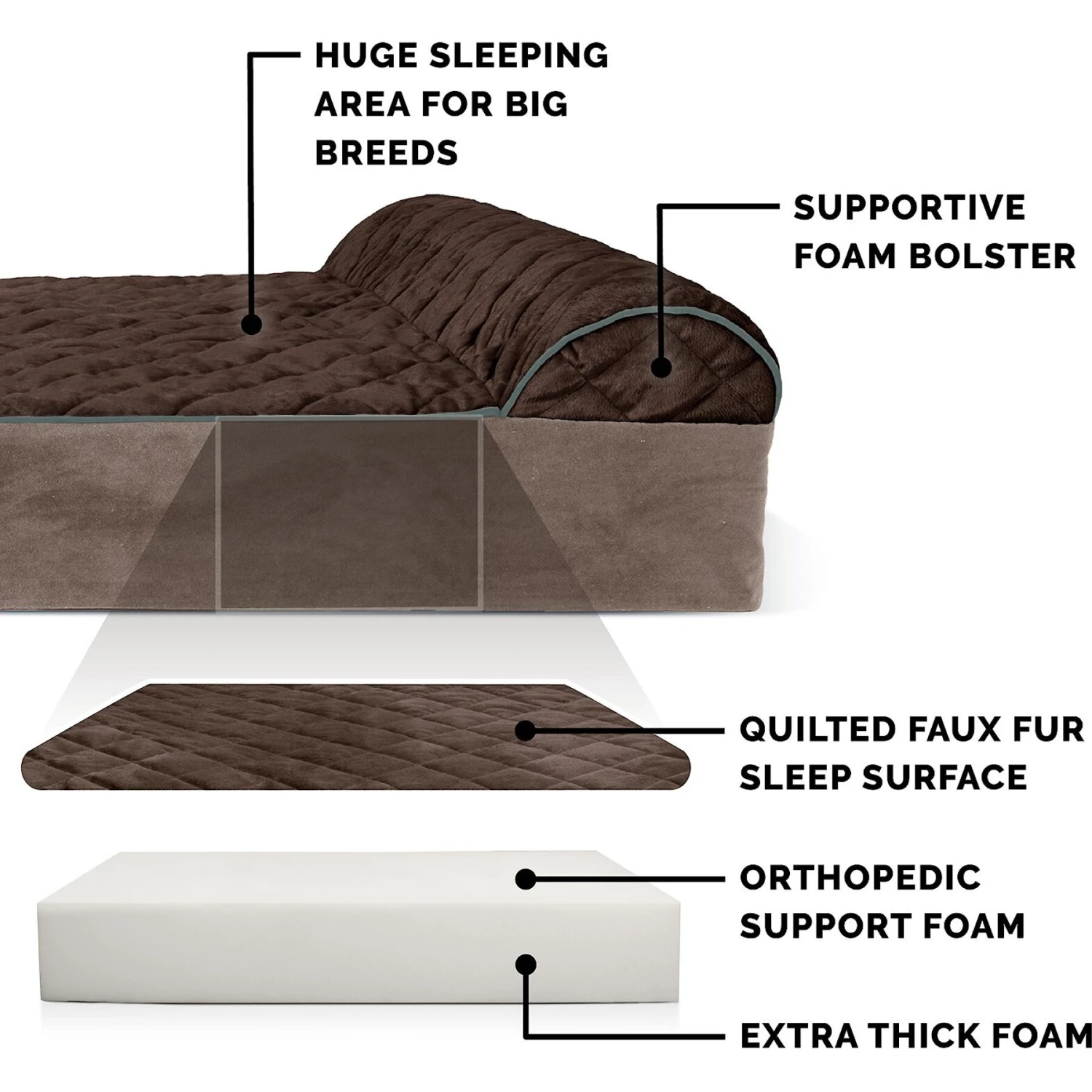 FurHaven Quilted Goliath Chaise Bolster Dog Bed With Removable Cover
