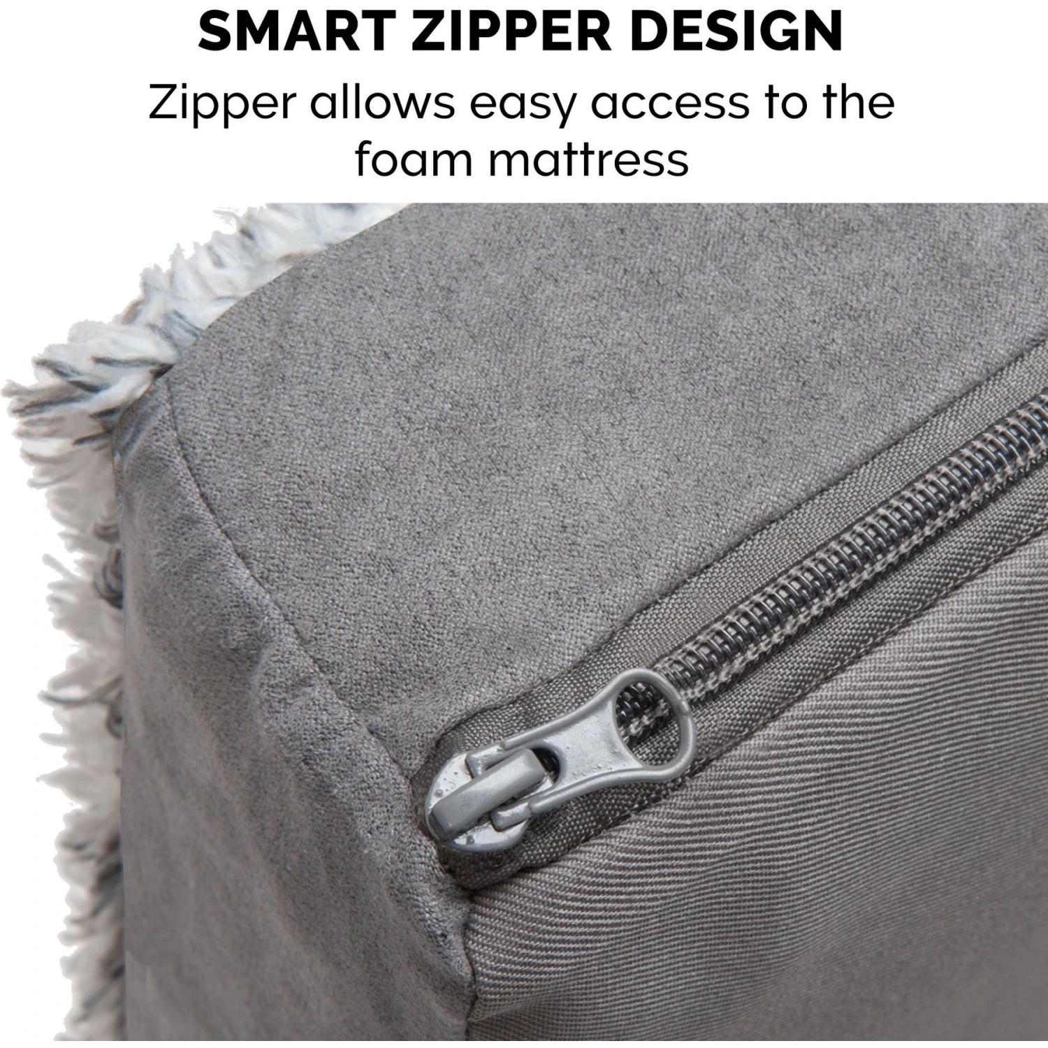 Give your best friend the support they need with a luxuriously soft FurHaven Two-Tone Faux Fur & Suede Deluxe Orthopedic Mat pet bed. Solid orthopedic foam provides your pet with extra support and cushioning for maximum comfort. This full support solid slab orthopedic foam provides even more support and comfort. Your pet will benefit from the orthopedic foam which is designed to evenly distribute weight and alleviate painful pressure on muscles and joints. Better rest for your pet can lead to improved overall health. Easy step-on mat design for smaller, older or disabled pets. The cover is zippered and removable for easy machine-washing, while the foam core is hand wash. This pet bed is ideal for bigger dogs (or smaller dogs to share) who like to sprawl & snooze the day away.