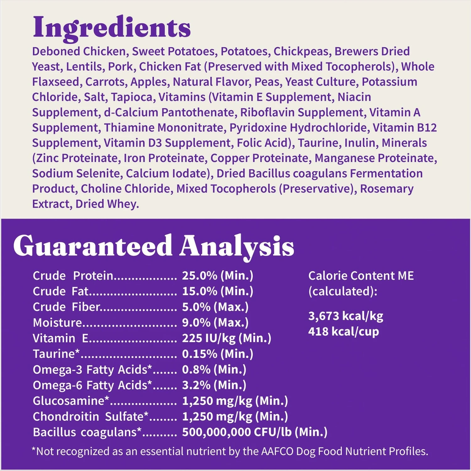 - This dry dog kibble is made with antibiotic-free chicken and no “meat meals” of any kind to support nutrition and digestion.