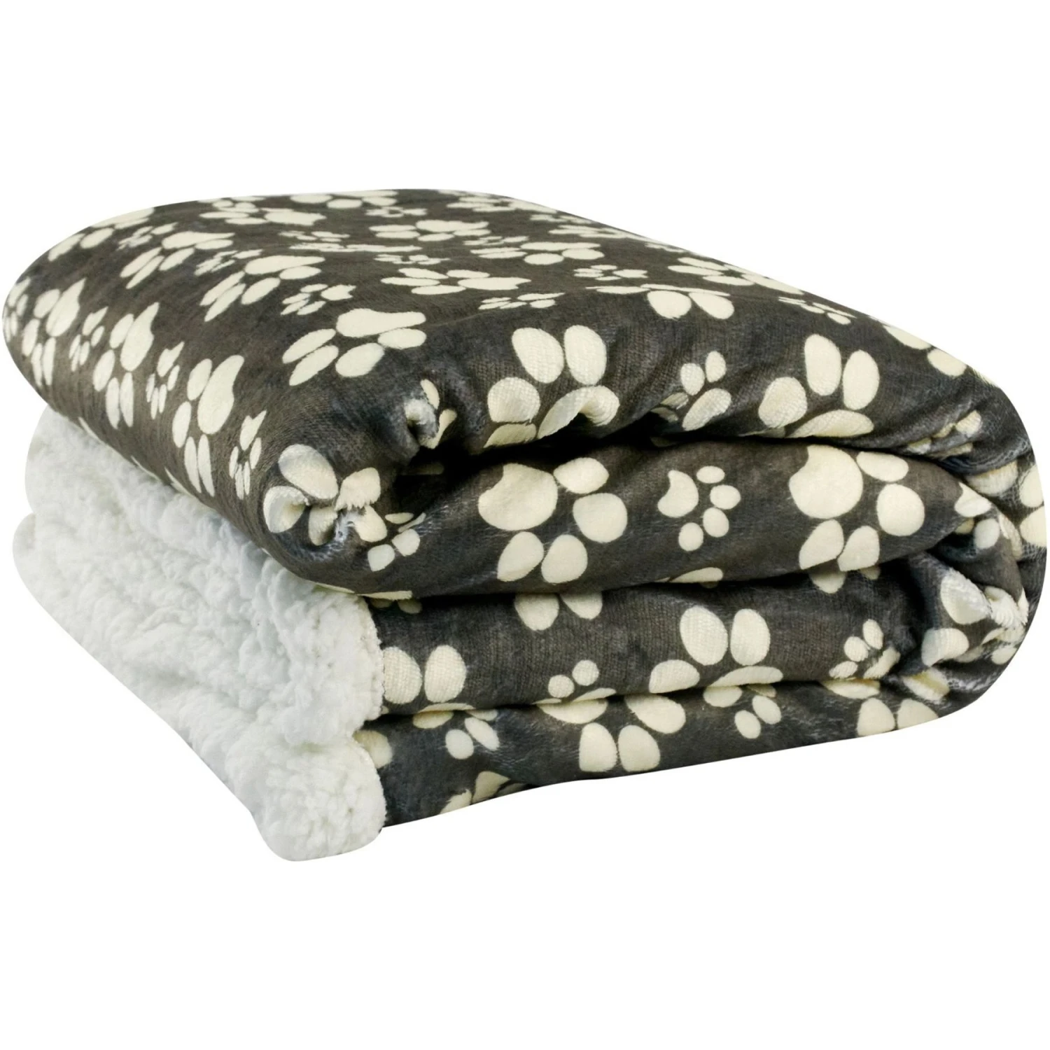 HappyCare Textiles Ultra Soft Cozy Flannel Paw Print Sherpa Cat & Dog Blanket, 50×60-in