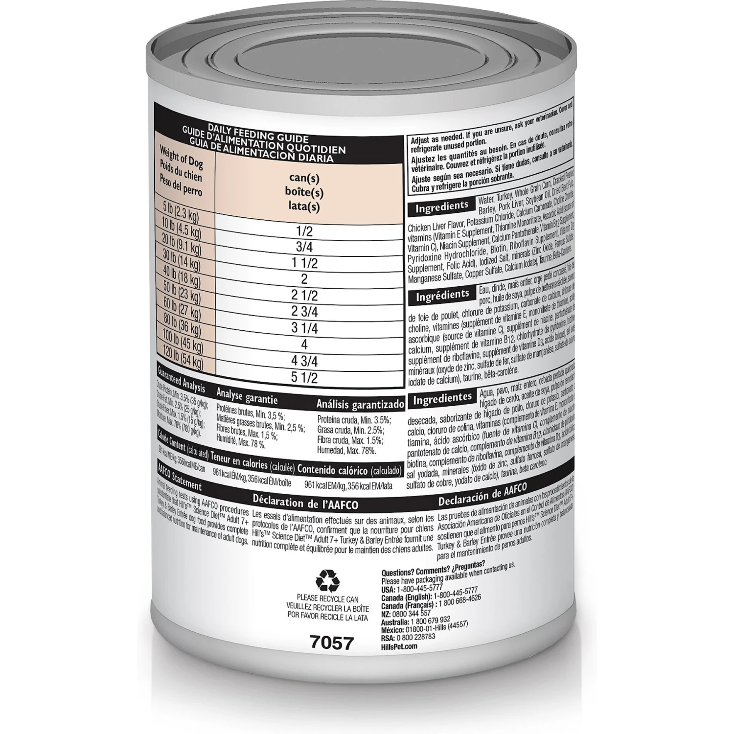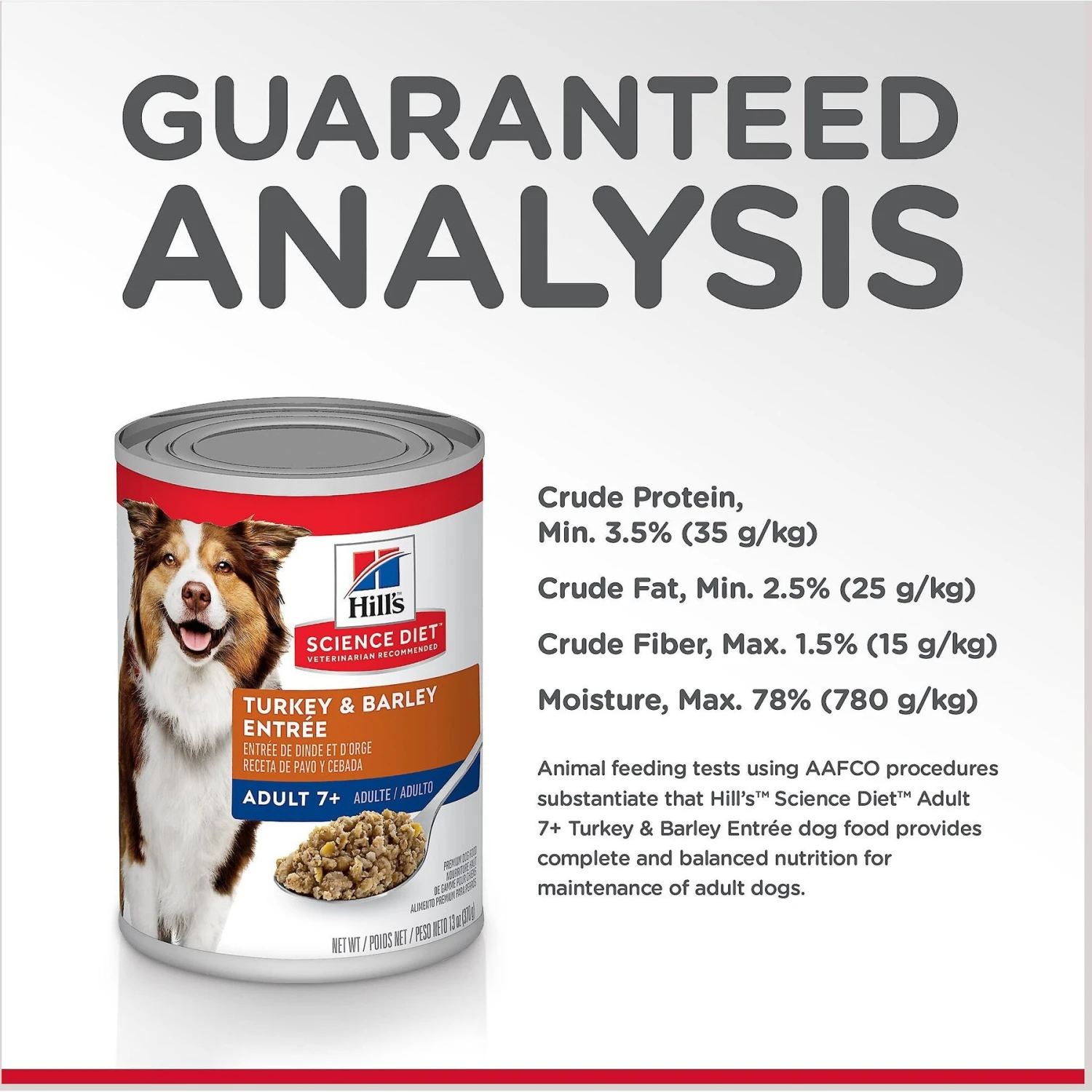 Hill’s Science Diet Adult 7+ Turkey & Barley Entree Canned Dog Food, 13-oz, Case Of 12