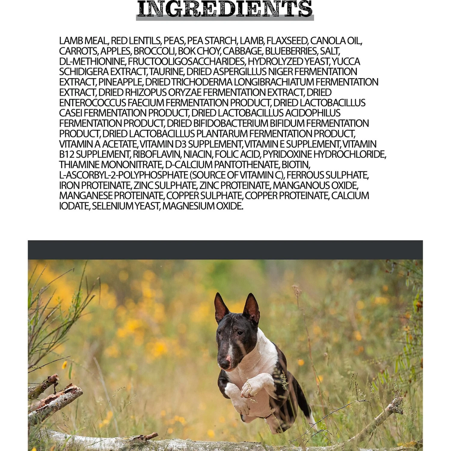 - Grain-free formula includes lamb, peas and lentils as the top ingredients for a low-glycemic, high-protein diet.