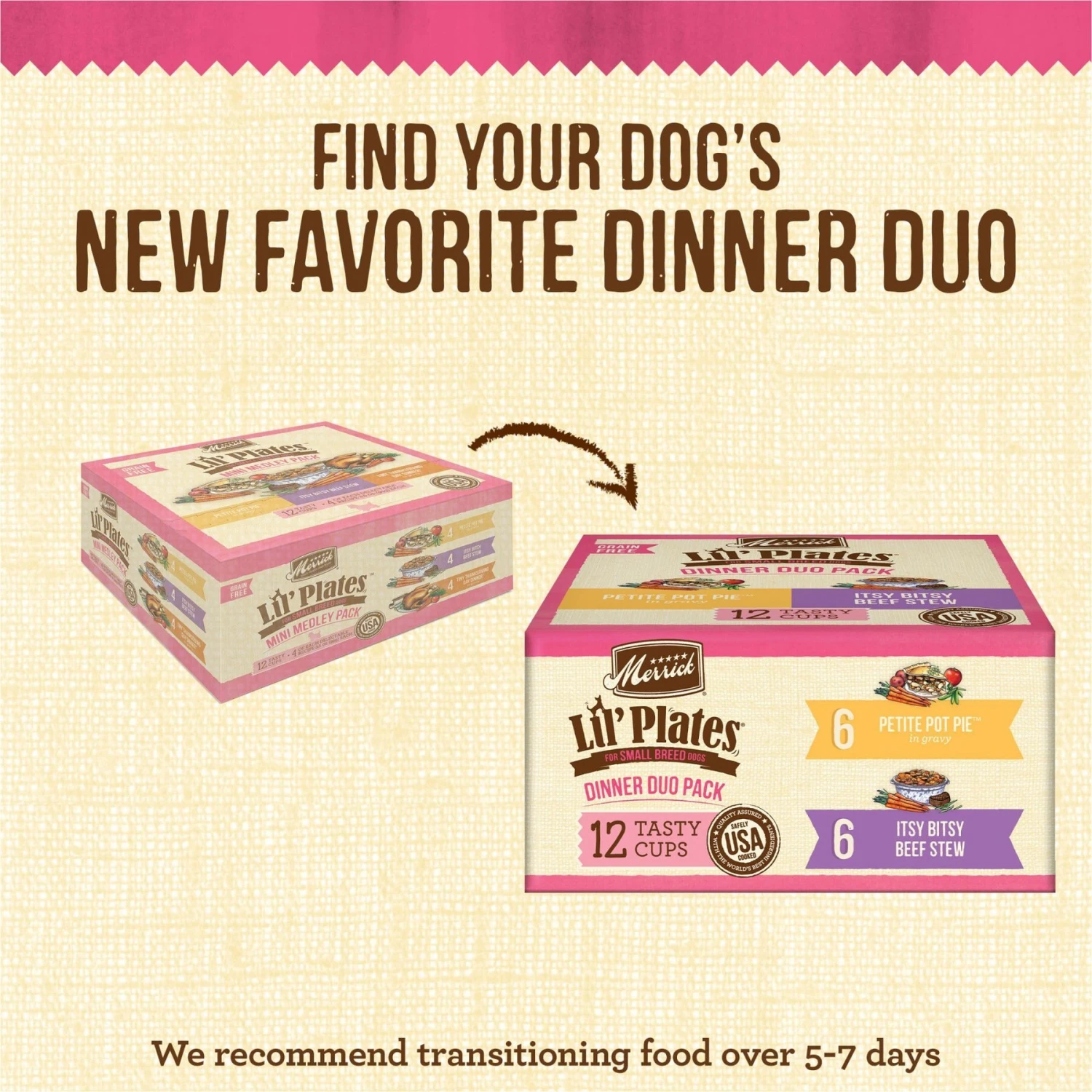 Merrick Lil’ Plates Dinner Duos Itsy Bitsy Beef Stew & Petite Pot Pie Variety Pack Grain-Free Wet Dog Food