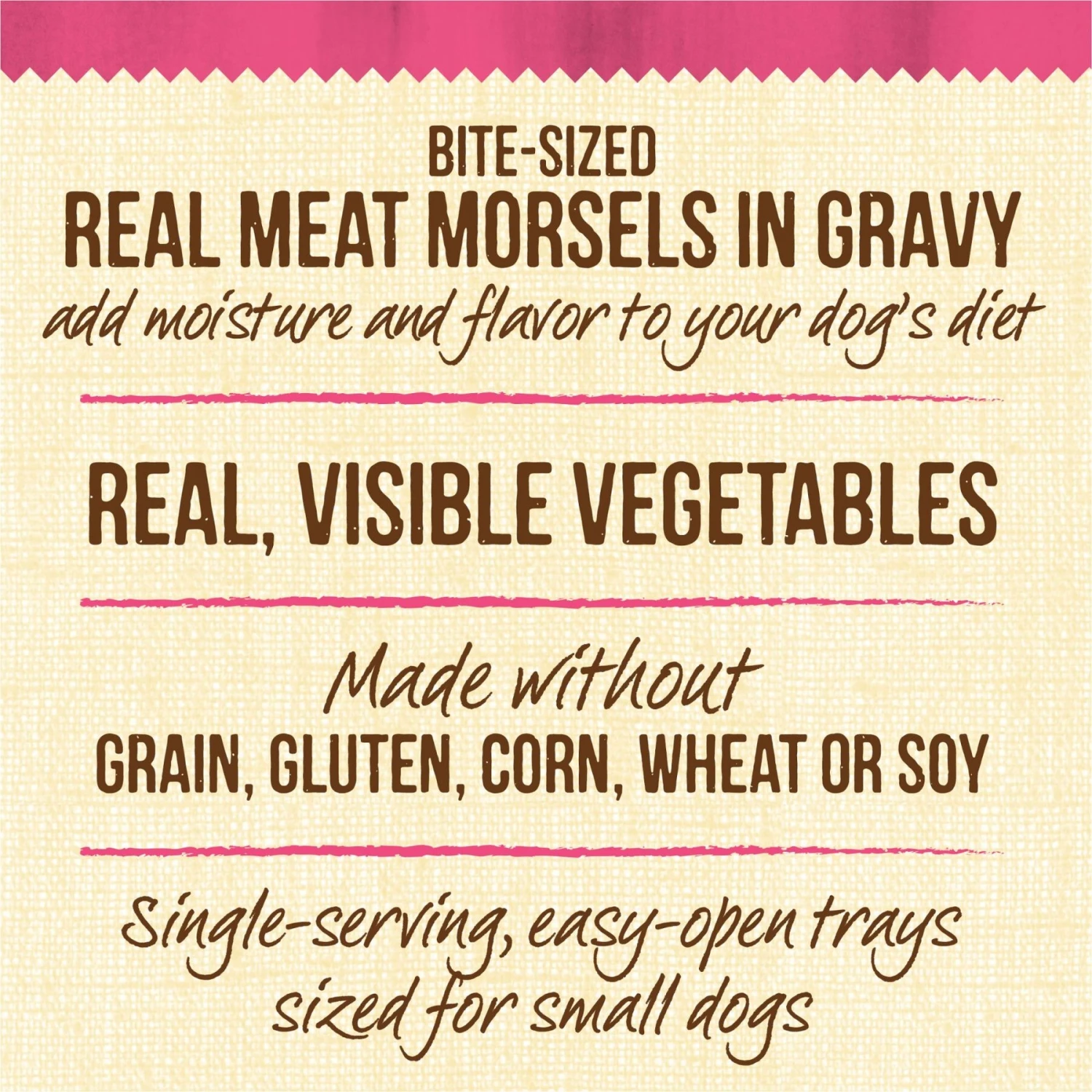 - Grain and gluten free, small breed wet dog food variety pack is crafted in the USA with real meat.