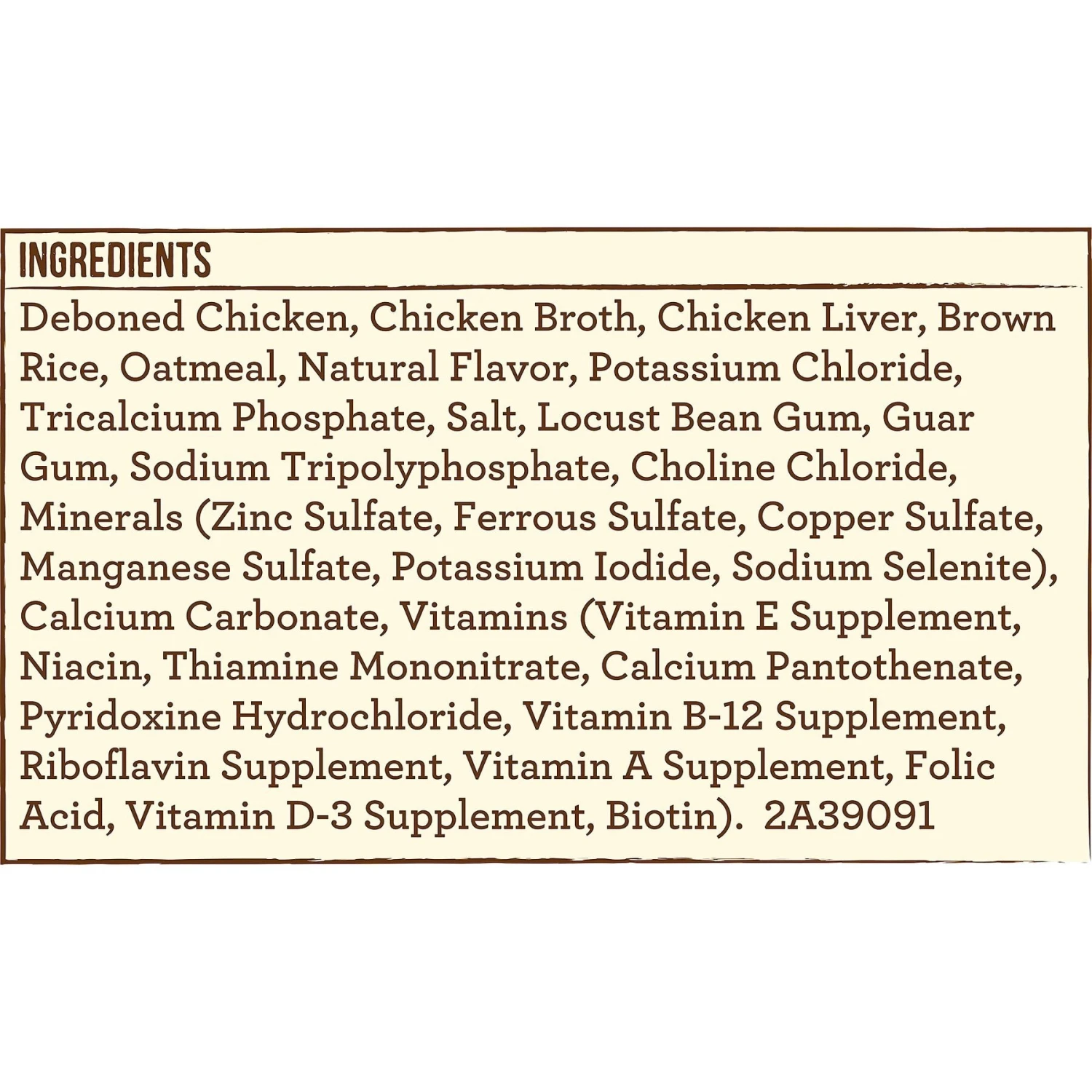 - Real, deboned chicken is the first ingredient in this premium recipe, providing nutritious protein, vitamins, and minerals plus easily digestible oatmeal for a complete and balanced diet.