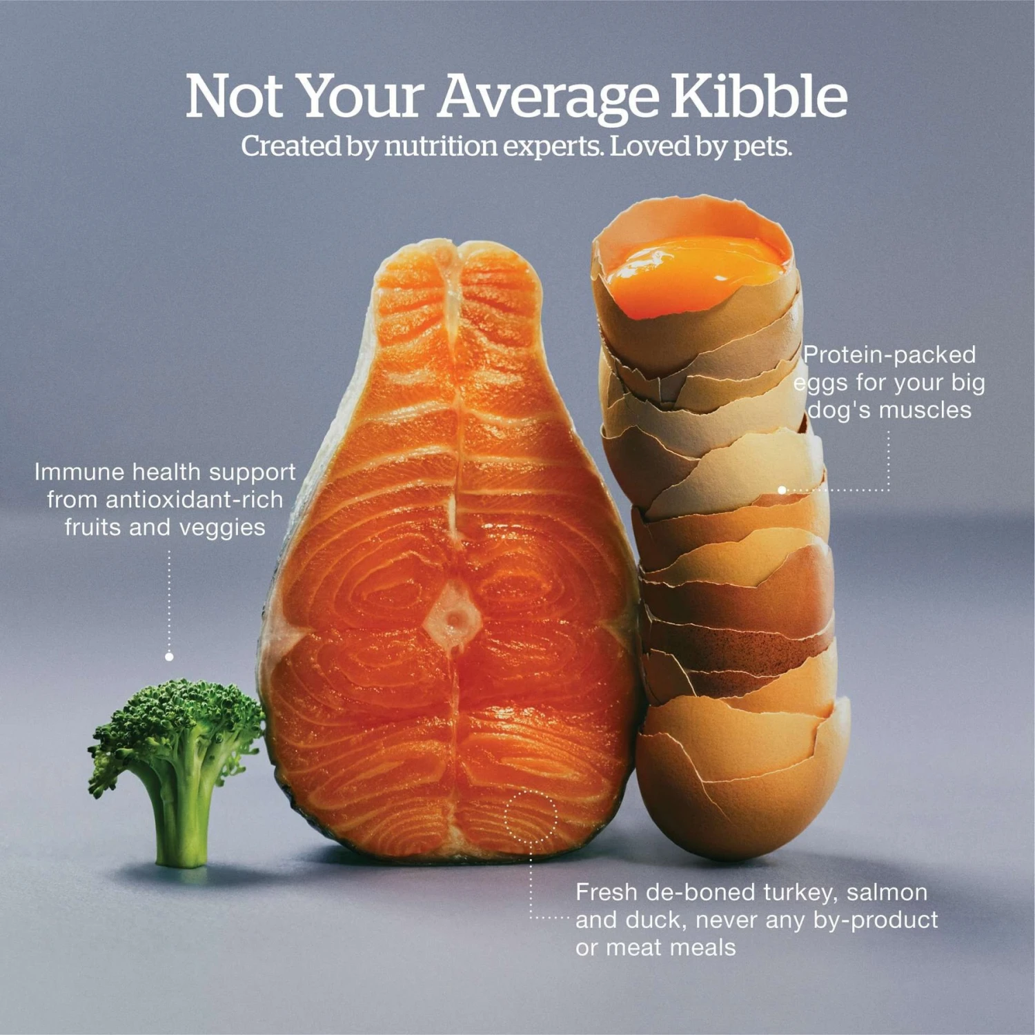 - Made with 20+ natural superfoods, including antioxidant-rich blueberries and pomegranate to support healthy immune system function. Whole eggs are also included and are a complete protein with all the essential amino acids your pet needs.