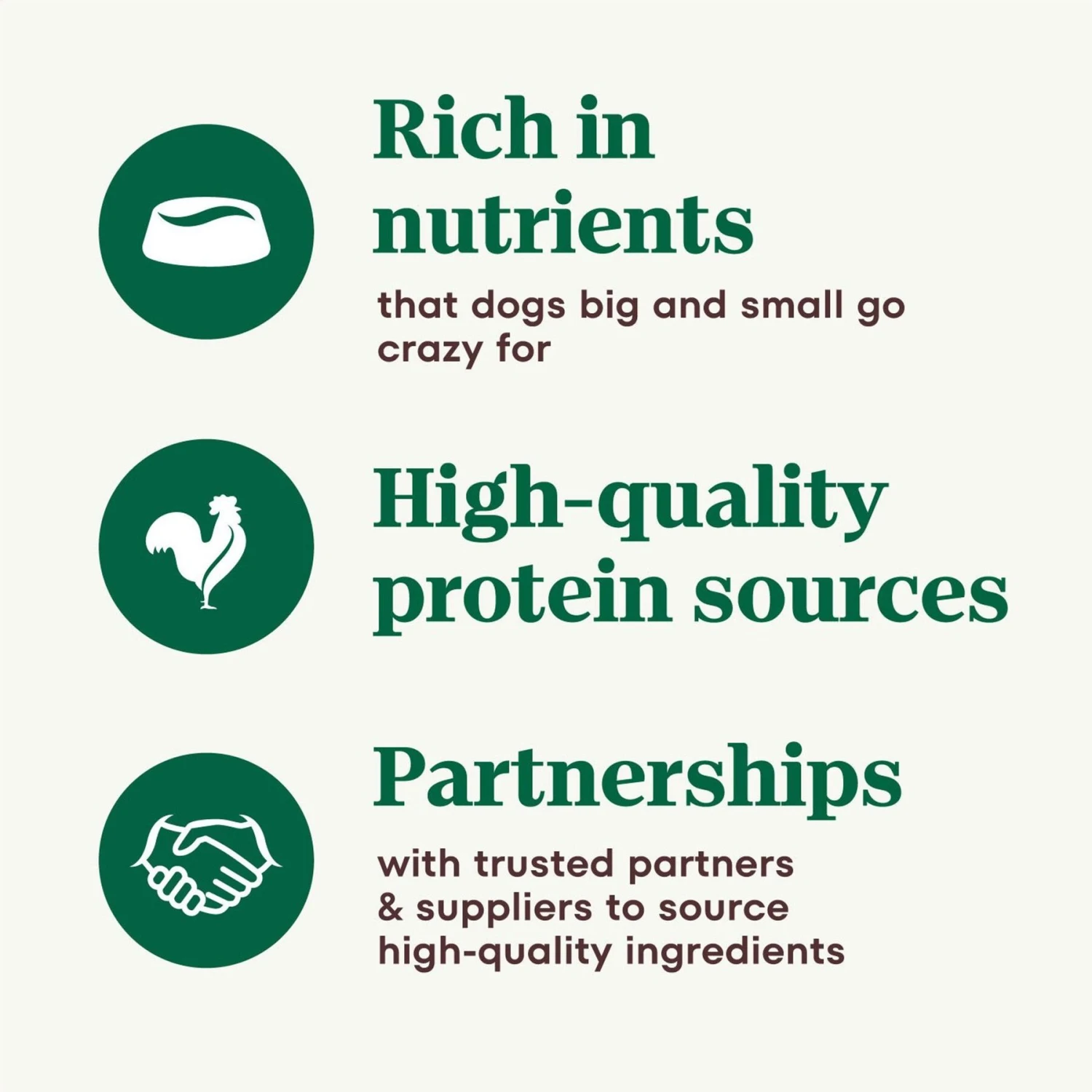 - Grain-free food contains no chicken by-product meal, corn, soy, wheat or artificial colors, flavors or preservatives.