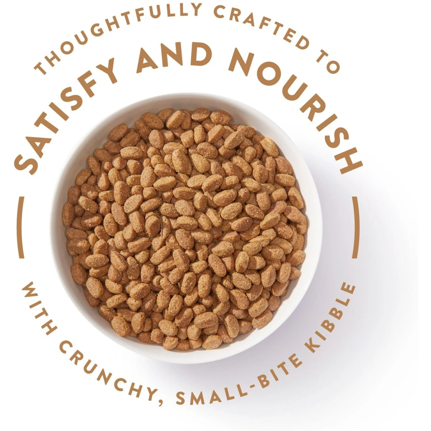 - Chewing the crunchy texture of the small-bite kibble helps reduce plaque buildup.
