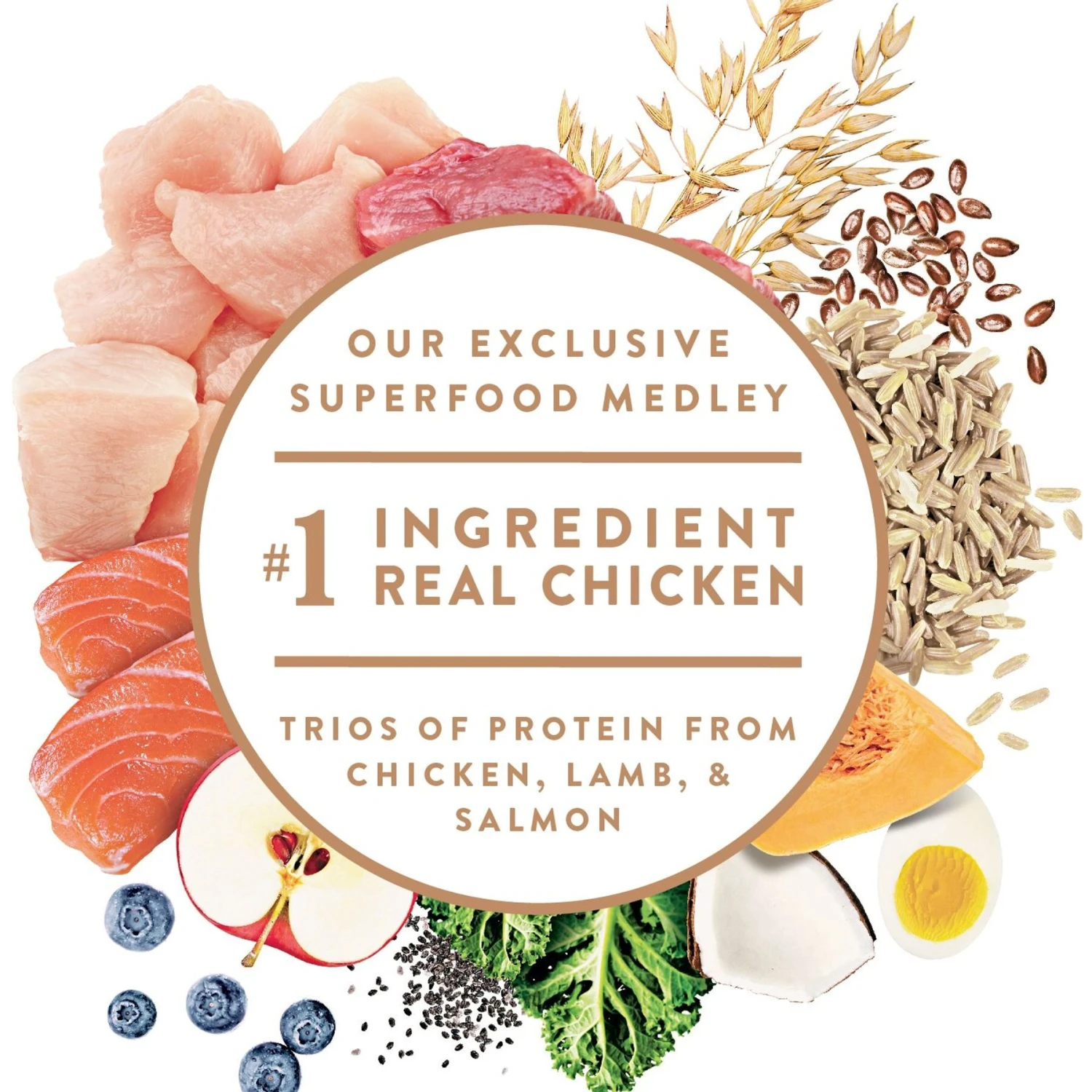 - Made with real, recognizable ingredients—no chicken by-product meal, corn, wheat, soy protein, artificial preservatives, flavors, or colors.
