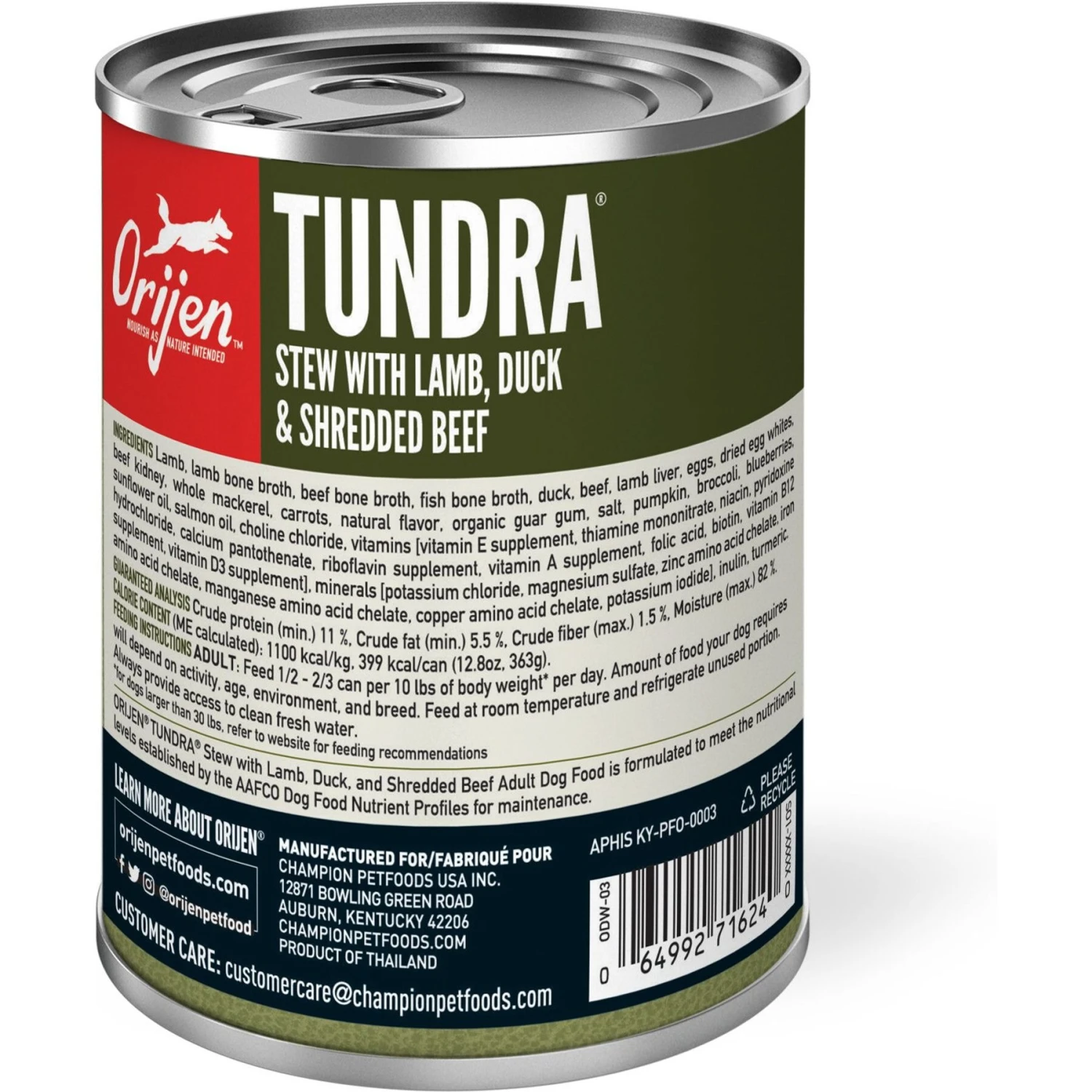 ORIJEN Real Meat Shreds Tundra Stew Grain-Free Wet Dog Food, 12.8-oz Can, Case Of 12