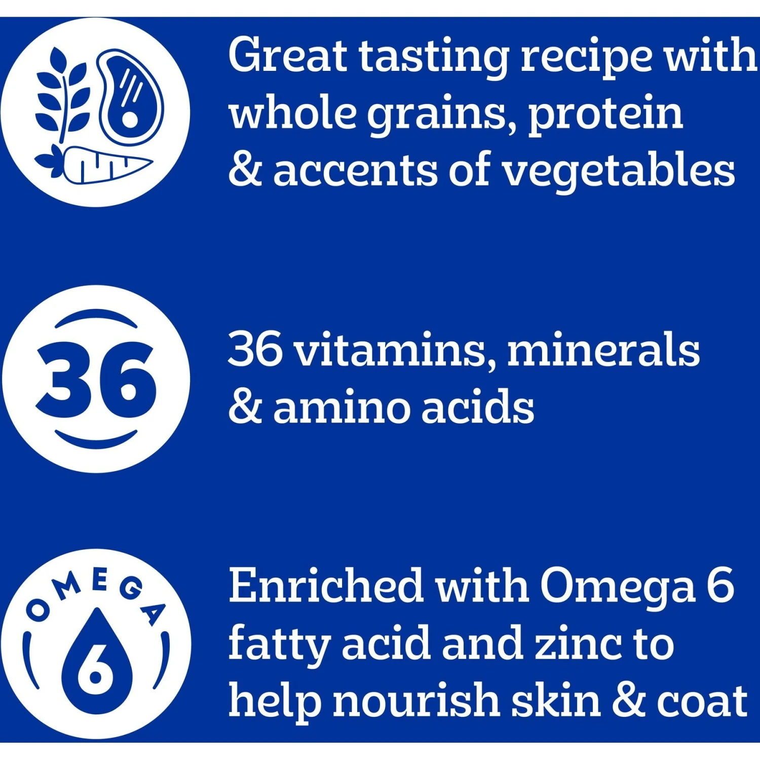 - Whole grains and a special fiber blend support healthy digestion with a delicious grilled steak flavor.