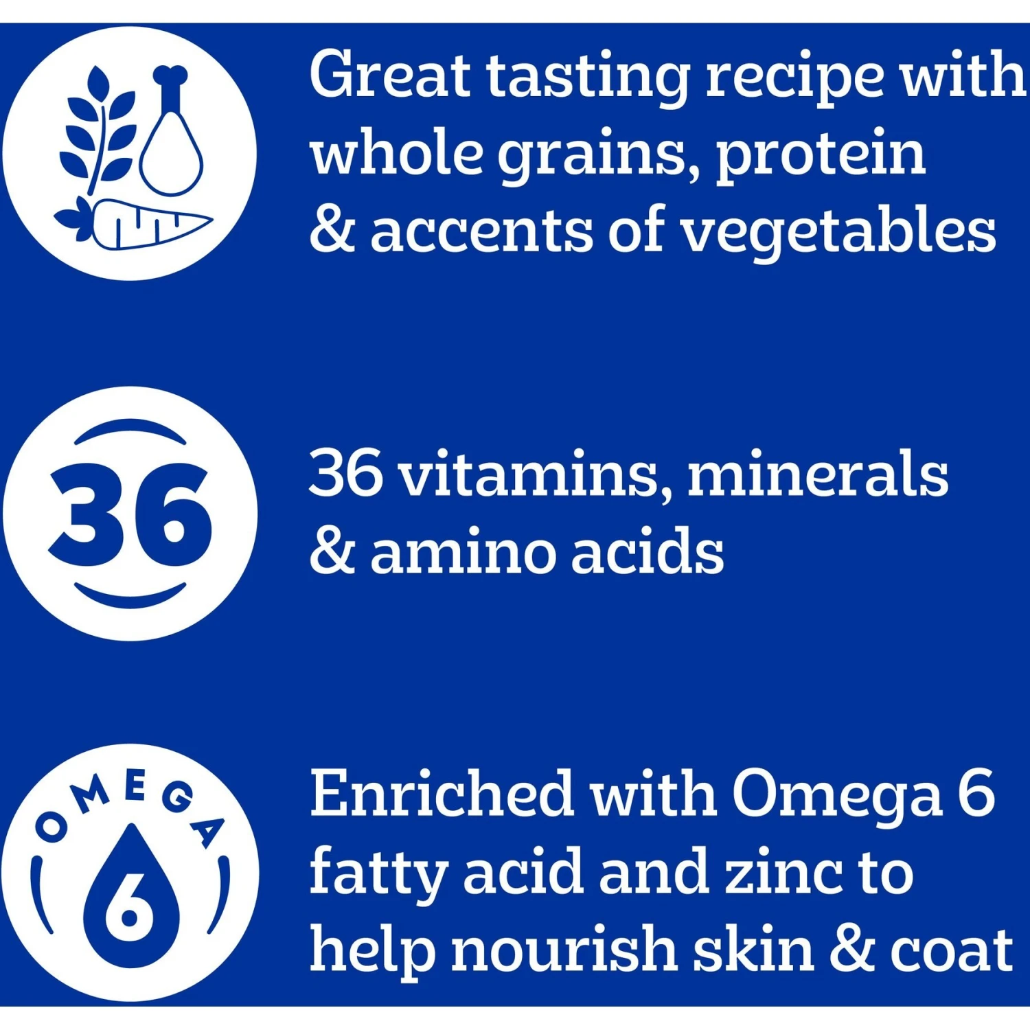 - Whole grains and a special fiber blend support healthy digestion with a delicious roasted chicken flavor.