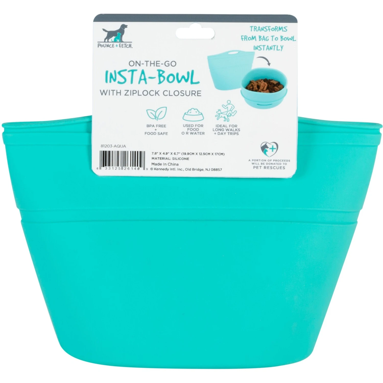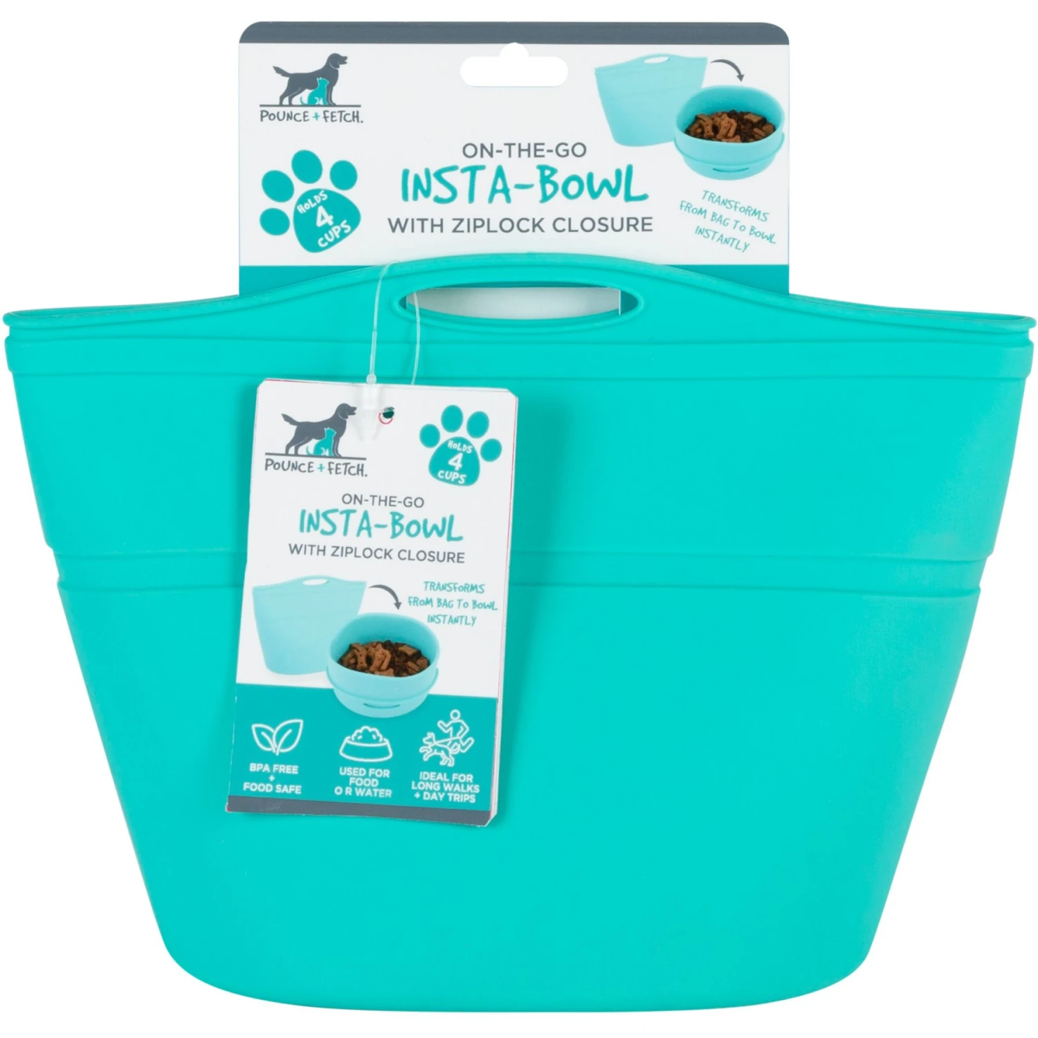 Pounce + Fetch Heavy Duty Silicone Travel Bag Bowl, Aqua, 4-cup
