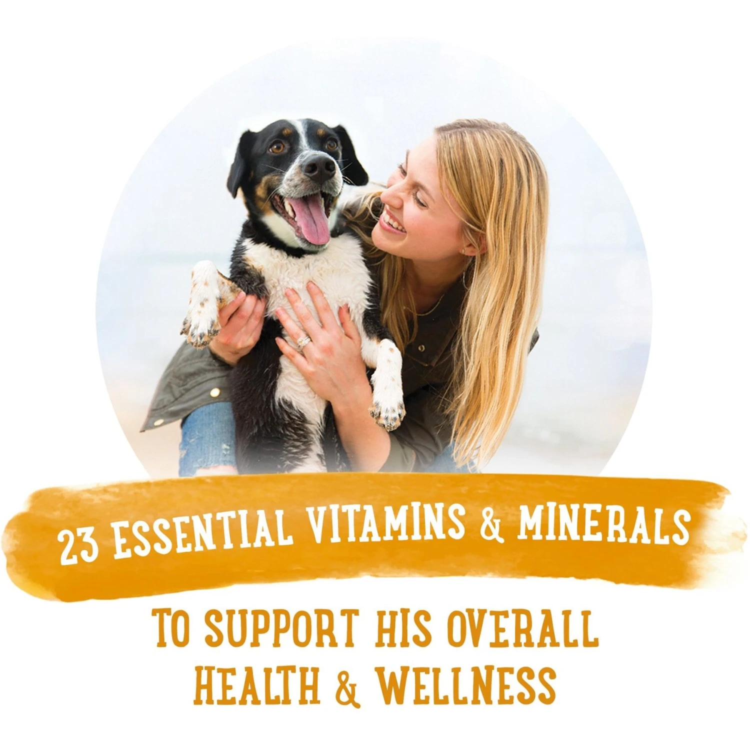 - With 23 essential vitamins and minerals, this gravy dog food supports your pooch’s nose-to-tail well-being with 100 percent complete and balanced nutrition for adult dogs.
