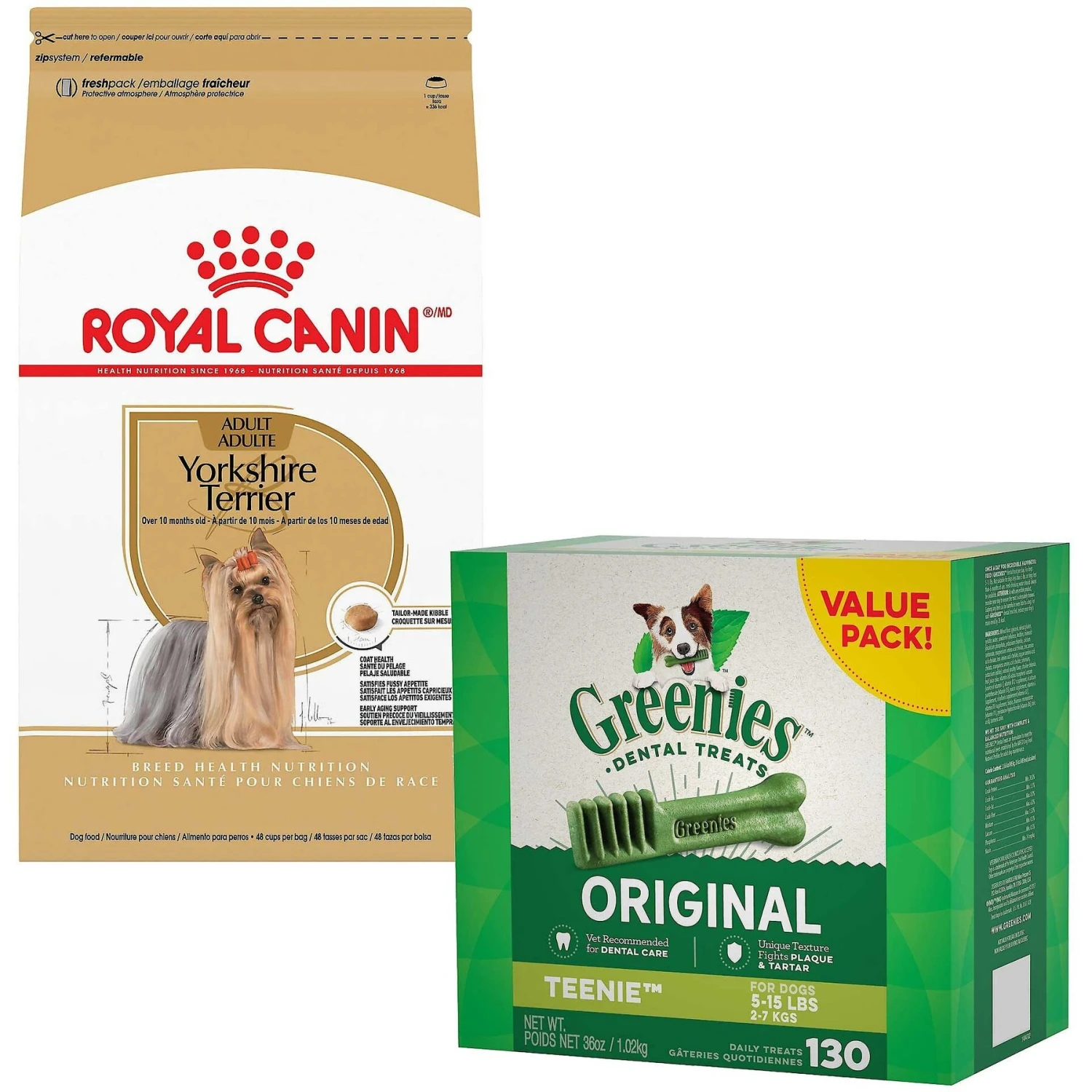 Royal Canin Breed Health Nutrition Yorkshire Terrier Adult Dry Dog Food & Greenies Teenie Dental Dog Treats