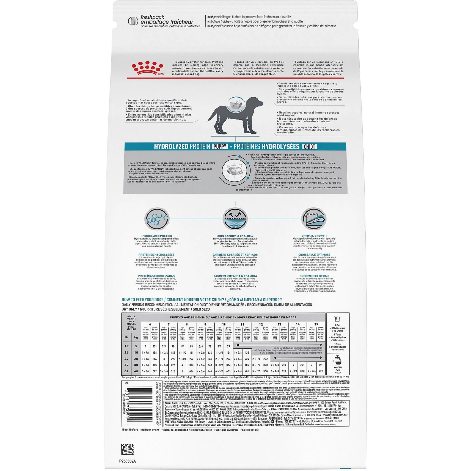 - Royal Canin Veterinary Diet Hydrolyzed Protein Puppy Dry Dog Food is suitable for all breeds, and importantly, is designed for puppies that have a food sensitivity.