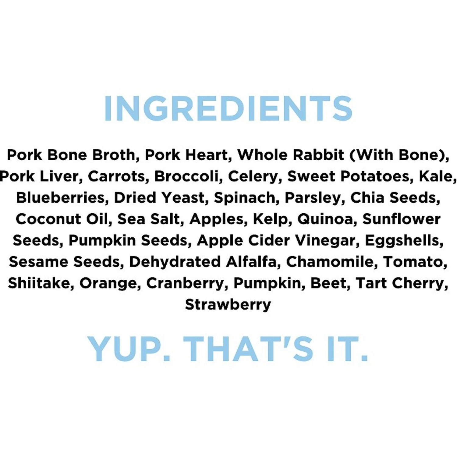 - Features pasture-raised, hormone-free pork and lean, moisture-rich rabbit.