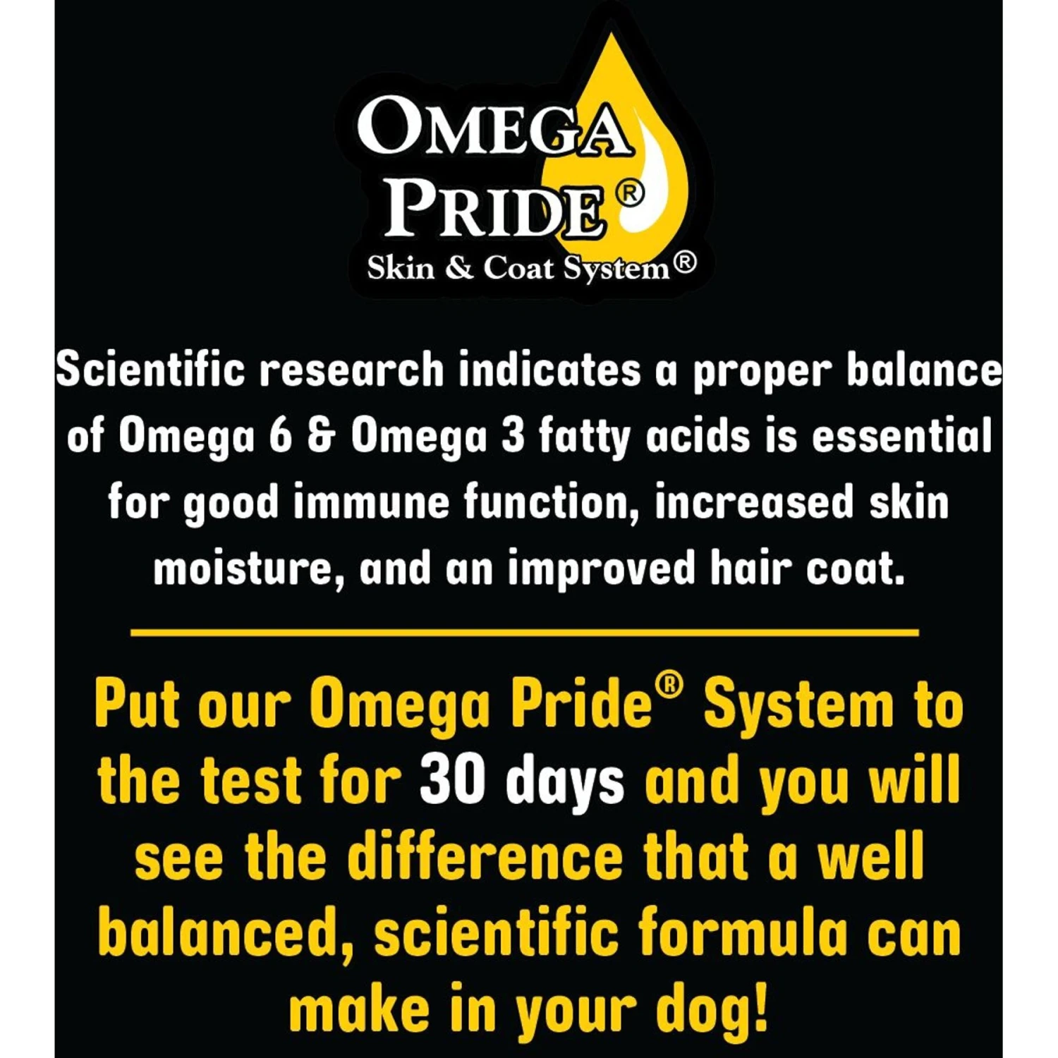 - Features the exclusive Omega Pride System—specially designed to provide a balanced ratio of omega-6 and omega-3 fatty acid levels between 5 to 1 and 10 to 1.