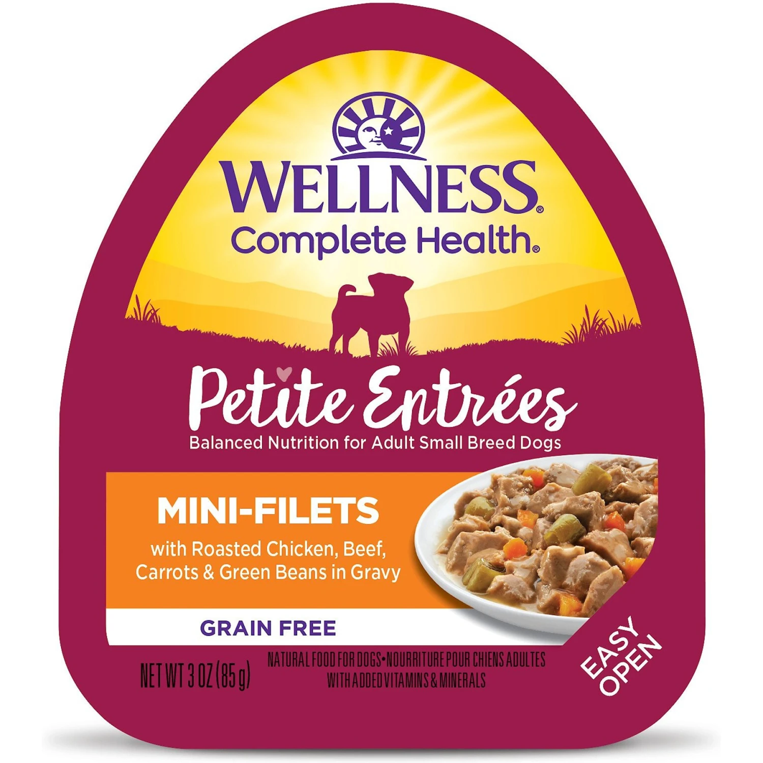 Wellness Petite Entrees Mini-Filets With Roasted Chicken, Beef, Carrots & Green Beans In Gravy Grain-Free Wet Dog Food, 3-oz Tray, Case Of 24