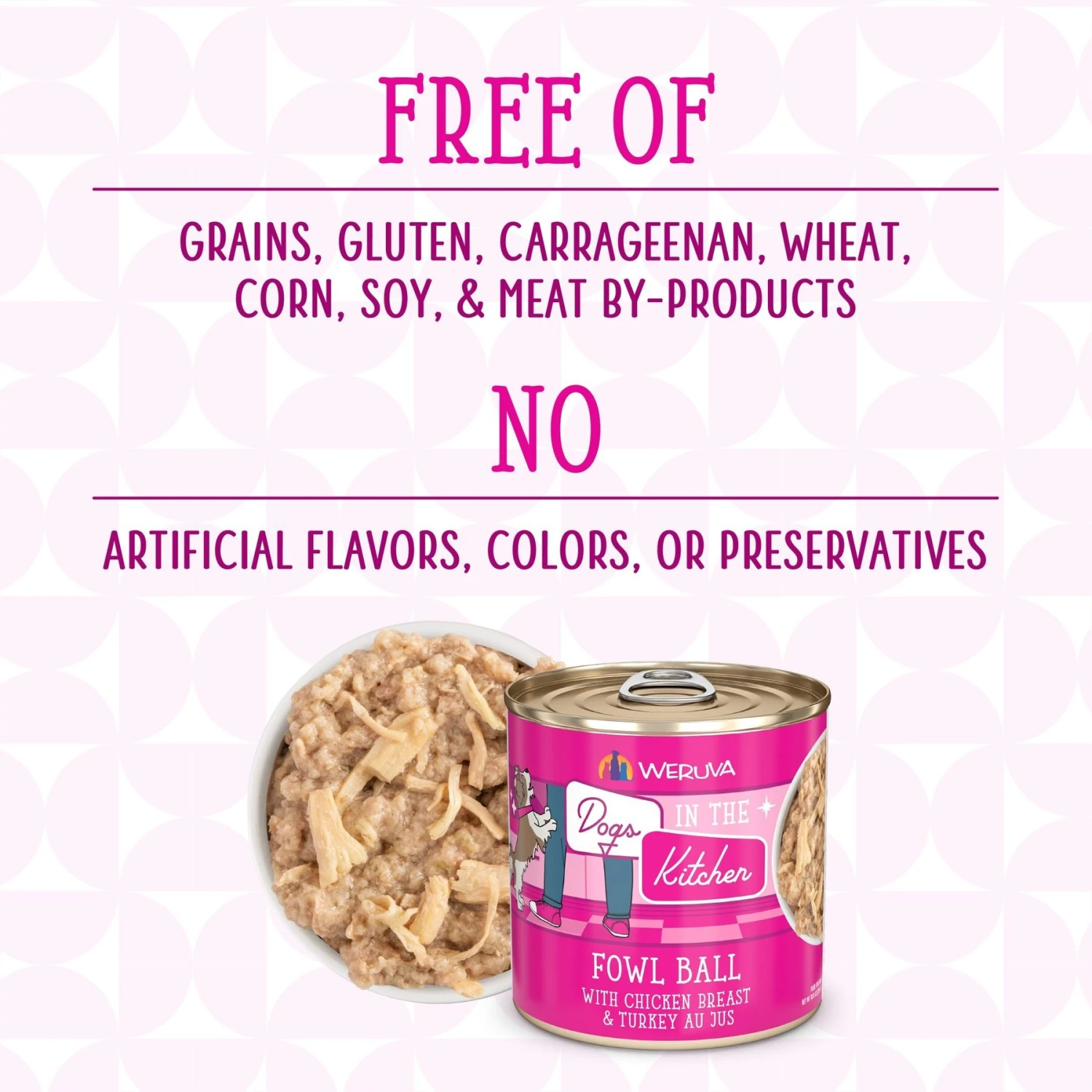 Weruva Dogs In The Kitchen Fowl Ball With Chicken Breast & Turkey Au Jus Grain-Free Canned Dog Food