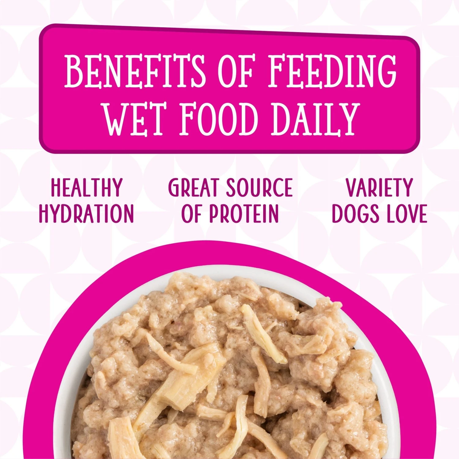 - Unique, 10 oz easy-open can is perfect for picky dogs or dogs who need a little less than standard. This delicious recipe features fresh, high-quality chicken breast and turkey in a savory au jus