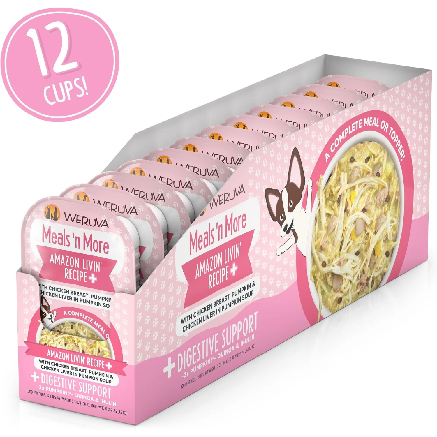 Weruva Meals ‘n More Natural Wet Dog Food, Amazon Livin’ Plus Digestive Support, 3.5-oz Cup, 12 Count